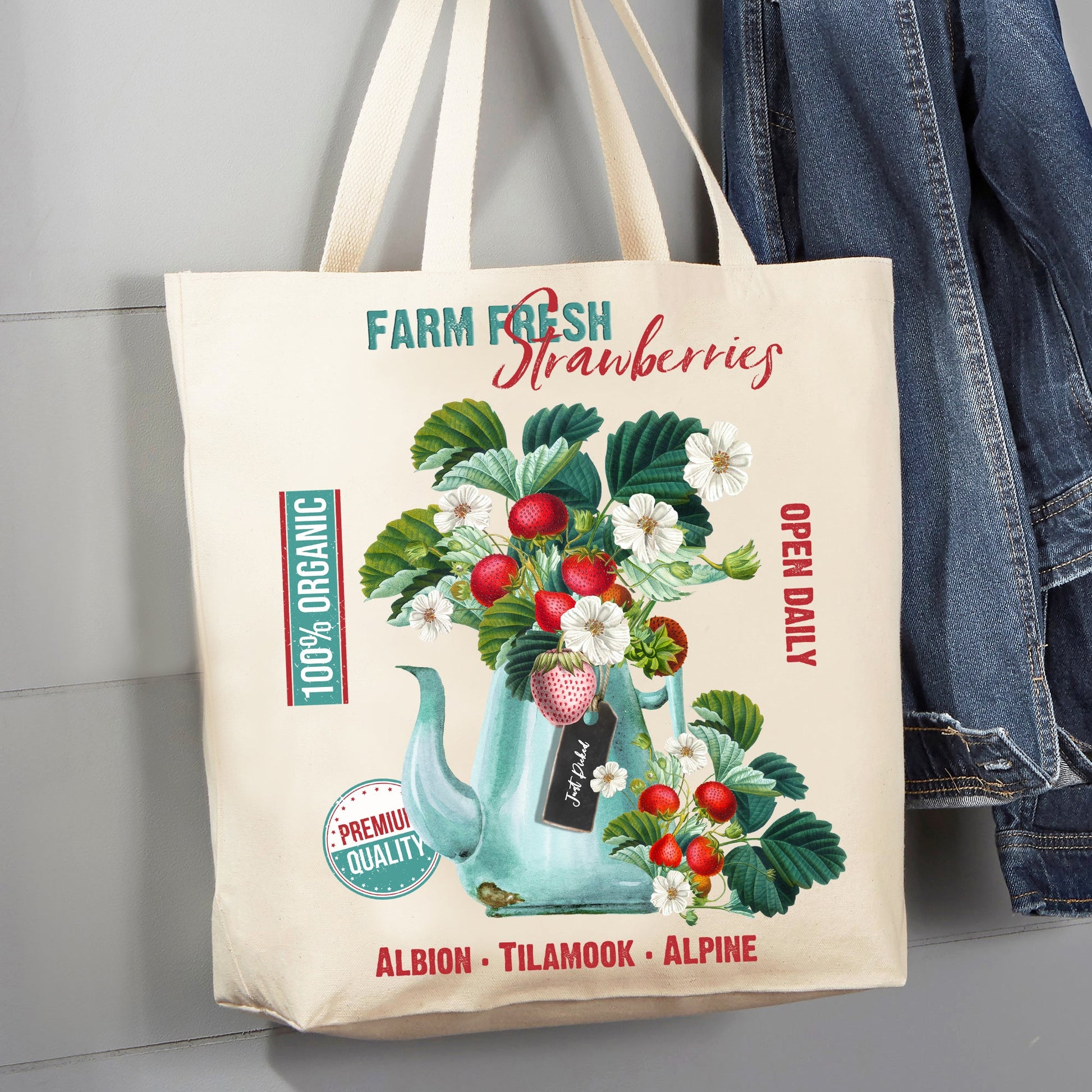 Farm Fresh Strawberries Farmers Market 12 oz Canvas Tote Bag