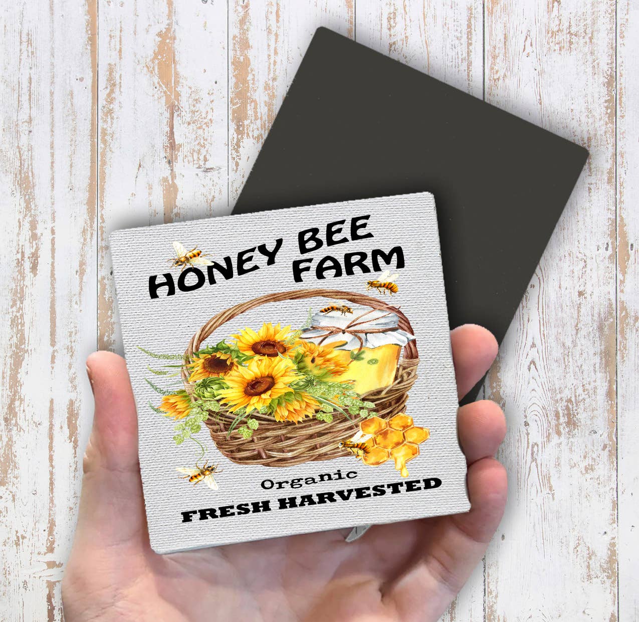 Modern Farm House Sunflower Honey Bees Magnet Fridge - Sets of 2