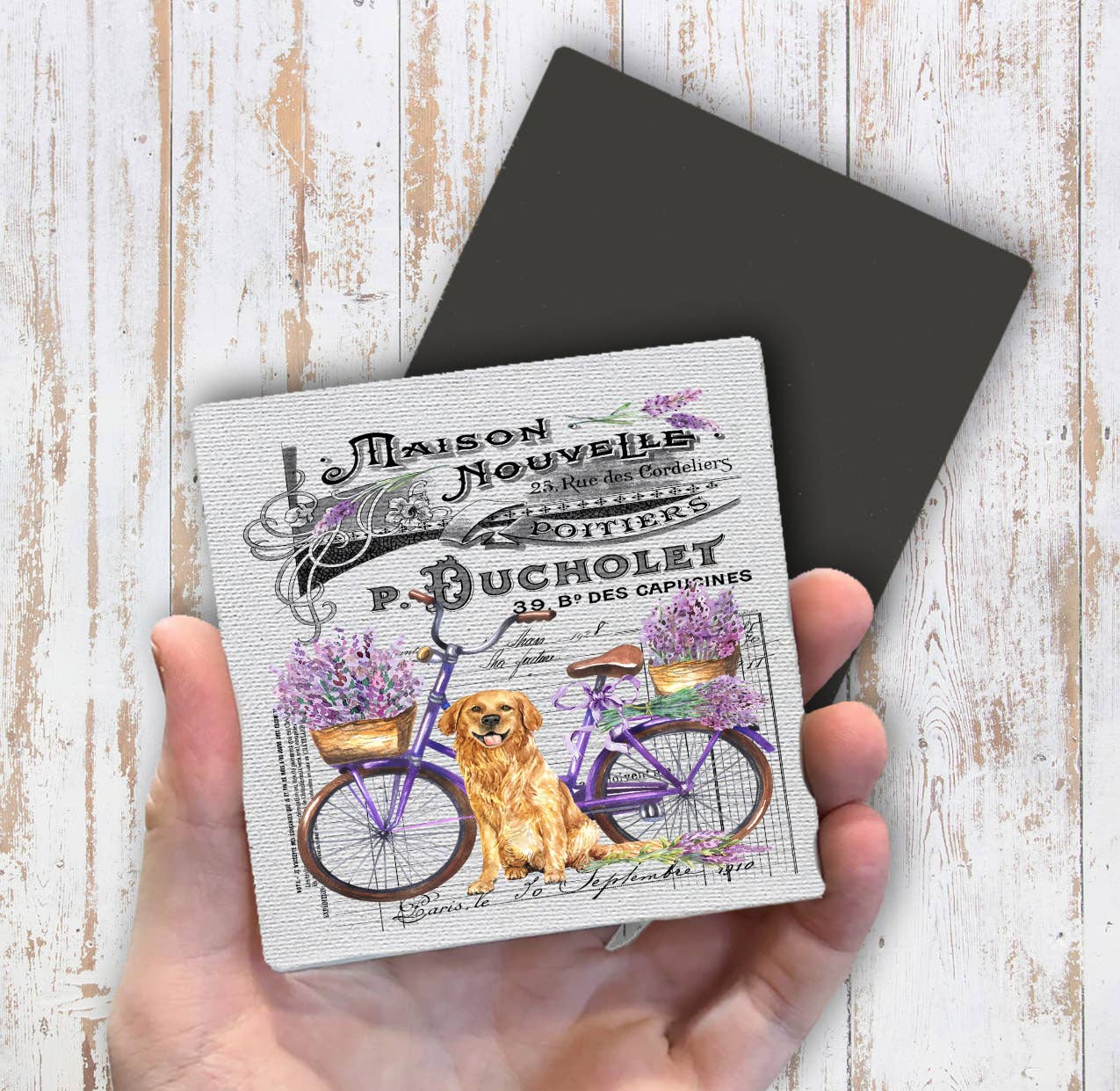 French Lavender Golden Retriever Dog Magnet Fridge - Sets of 2