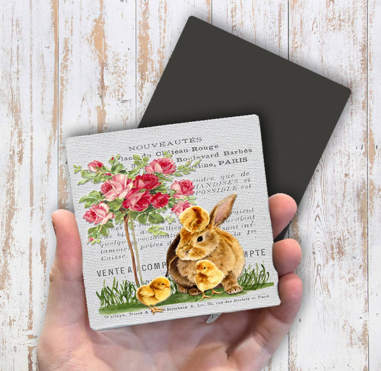 Vintage French Bunny Chicks Roses Magnet Fridge - Sets of 2