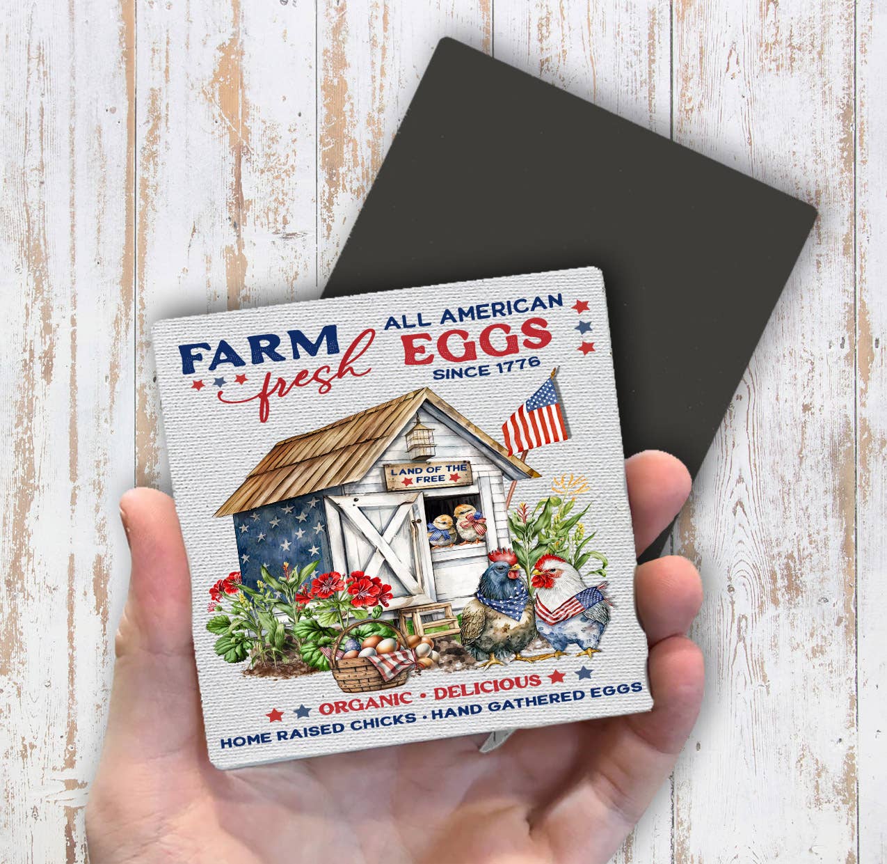 Farmhouse 4th of July Patriotic Chicken Coop Magnet Fridge - Sets of 2