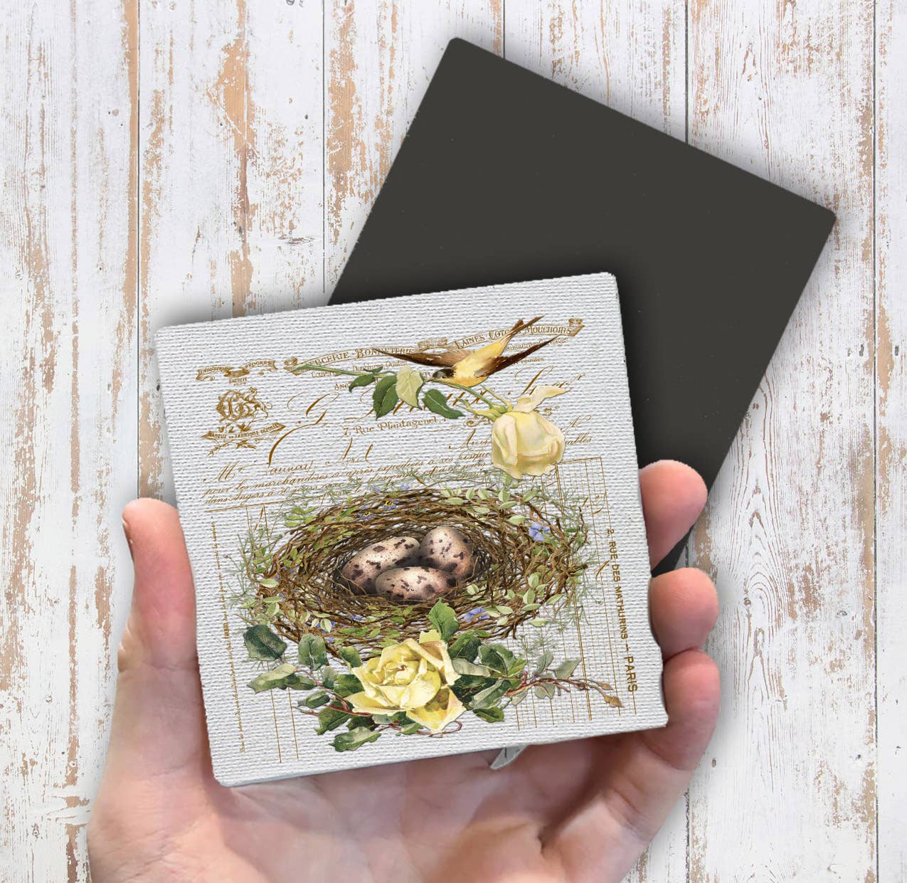 Vintage Shabby Chic Birds Nest Roses Magnet Fridge - Sets of 2