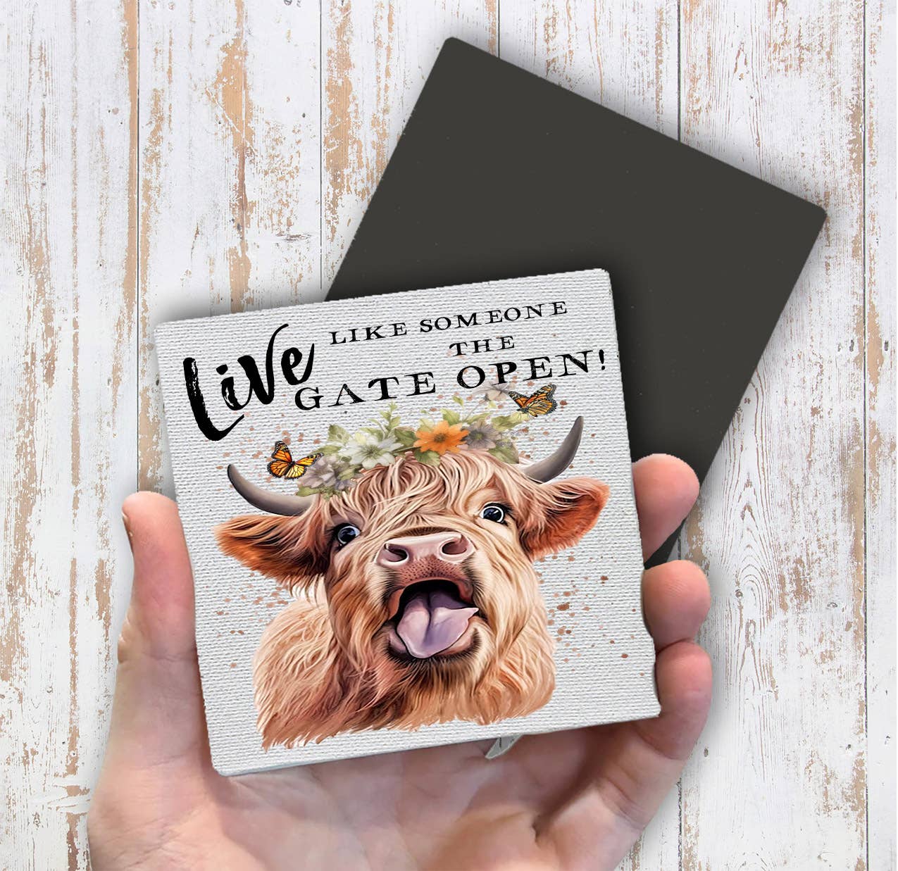 Highland Cow Life Life Gate Open Magnet Fridge - Sets of 2