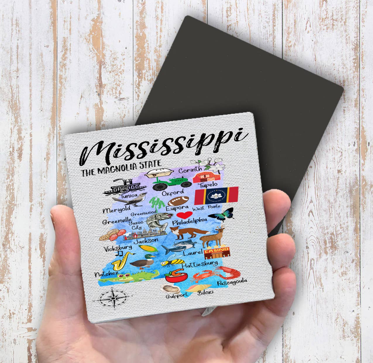 Mississippi State Map Souvenir Magnet Fridge - Sets of 2