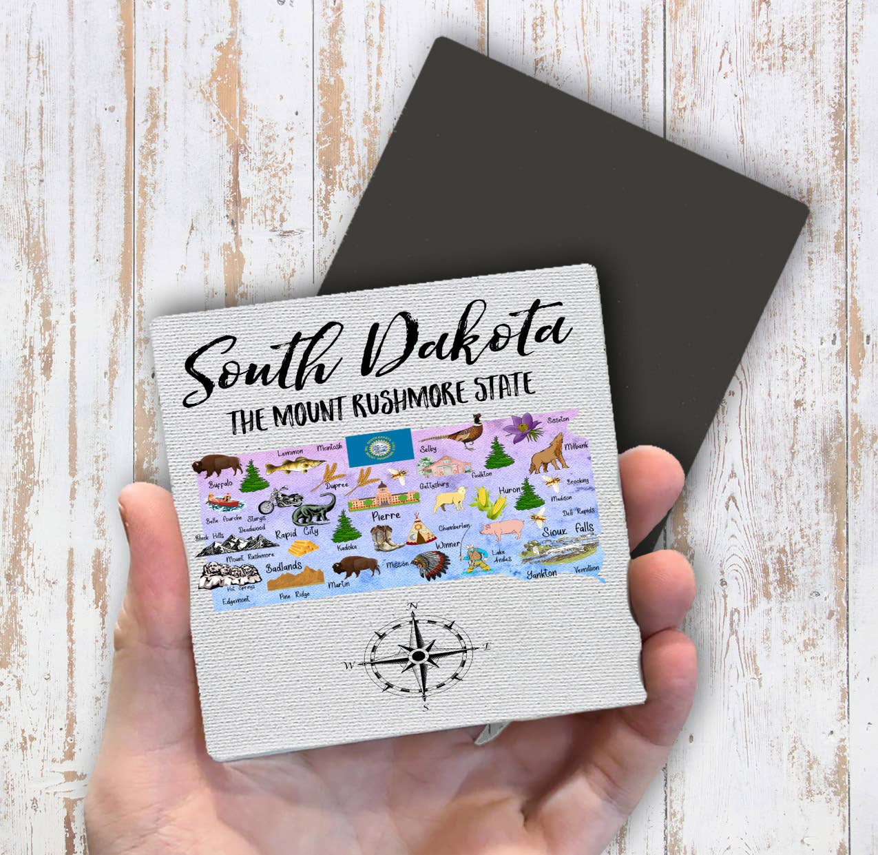 South Dakota State Map Souvenir Magnet Fridge - Sets of 2