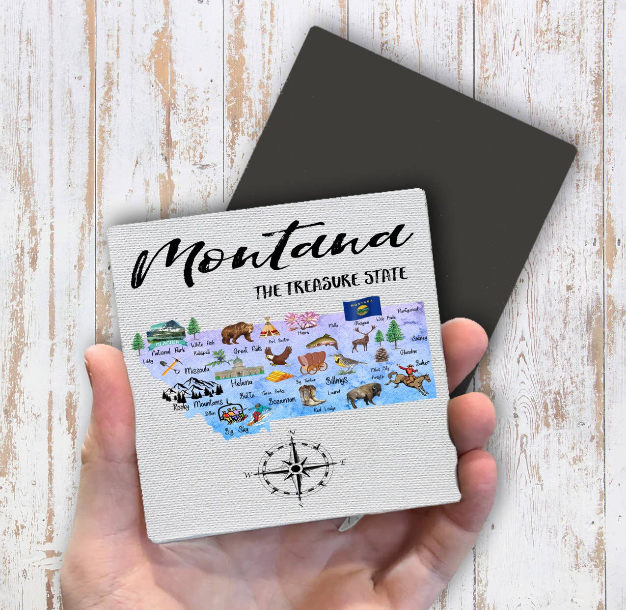 Montana State Map Souvenir Magnet Fridge - Sets of 2