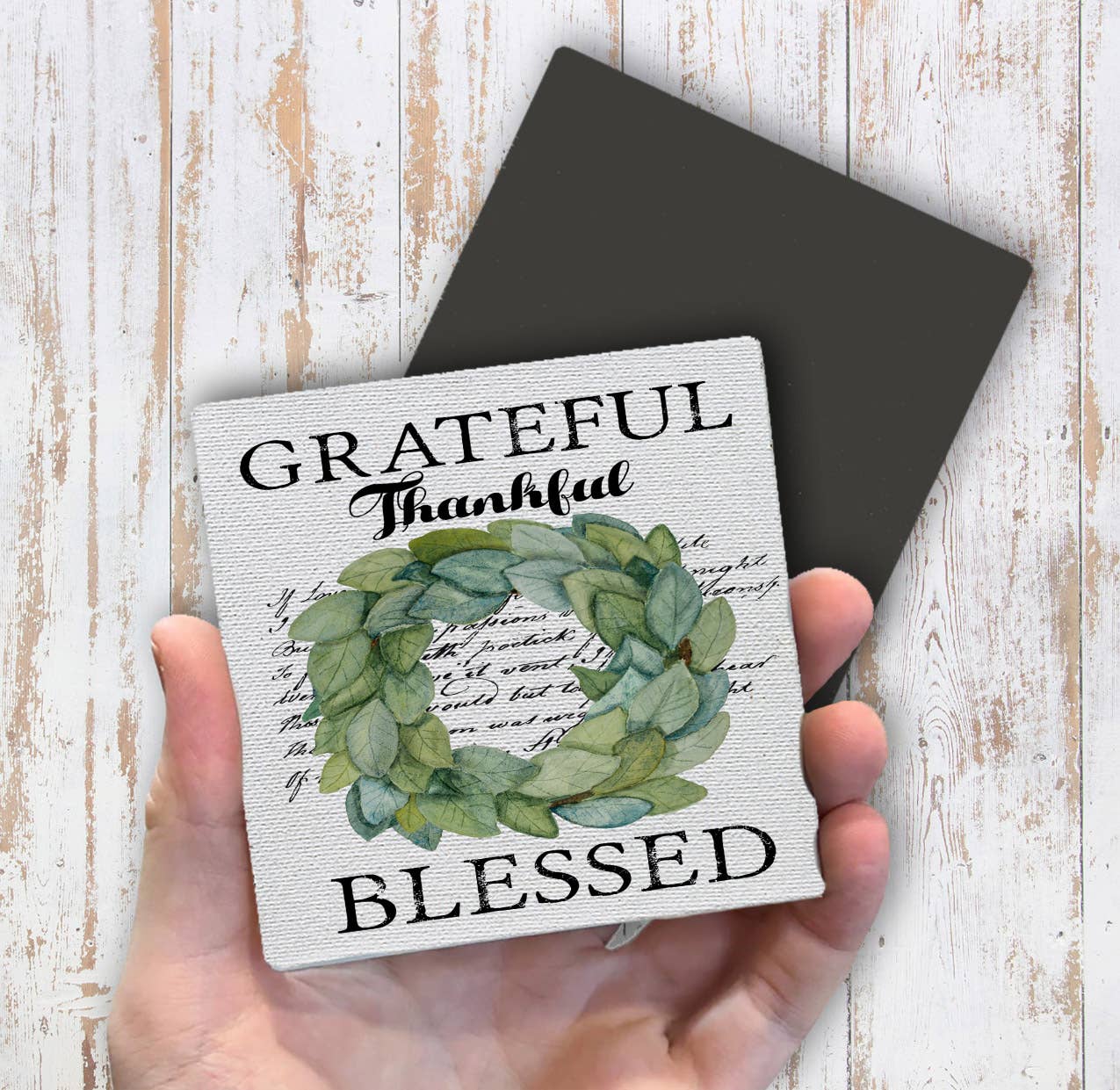 Grateful Thankful Blessed Wreath Magnet Fridge - Sets of 2