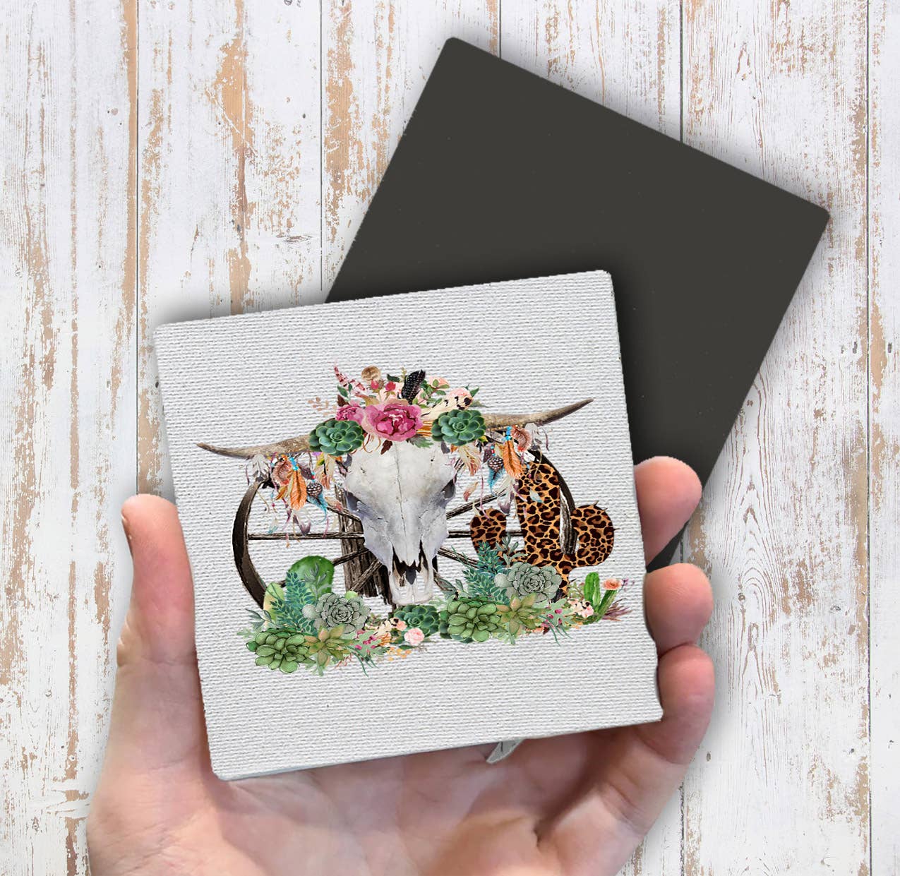 Western Cow Skull Cactus Southwestern Magnet Fridge - Sets of 2