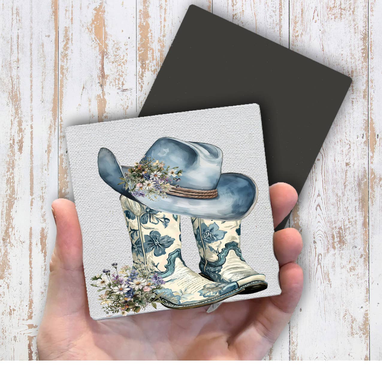 Western Blue & White Cowboy Boots Magnet Fridge - Sets of 2