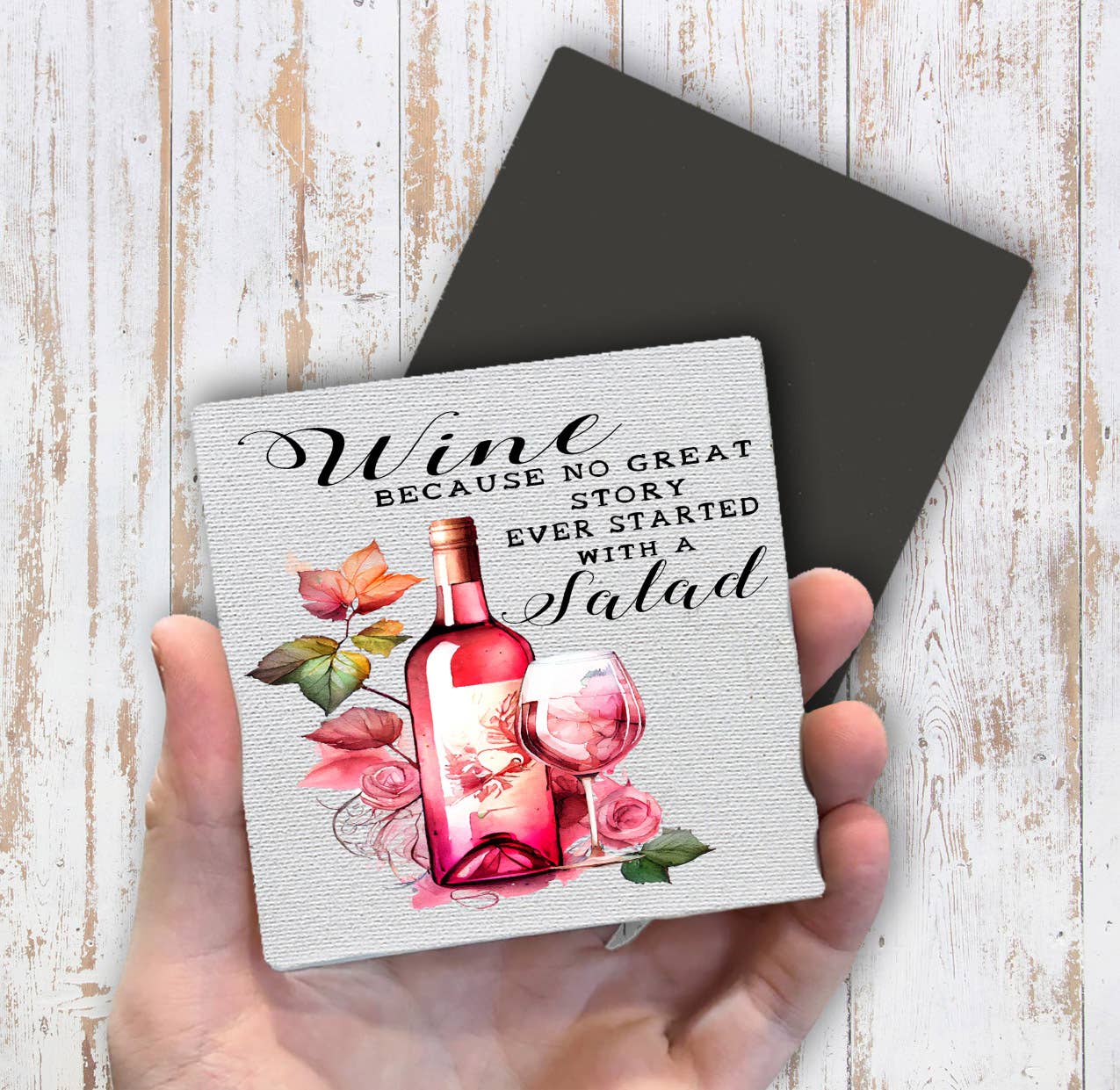 Wine No Story Starts with Salad Funny Magnet Fridge - Sets of 2