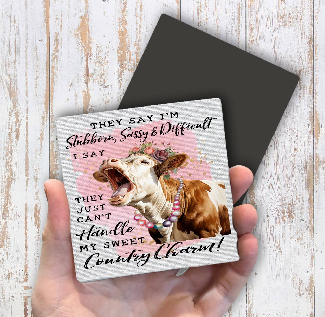 Stubborn Sassy Country Charm Cow Magnet Fridge - Sets of 2