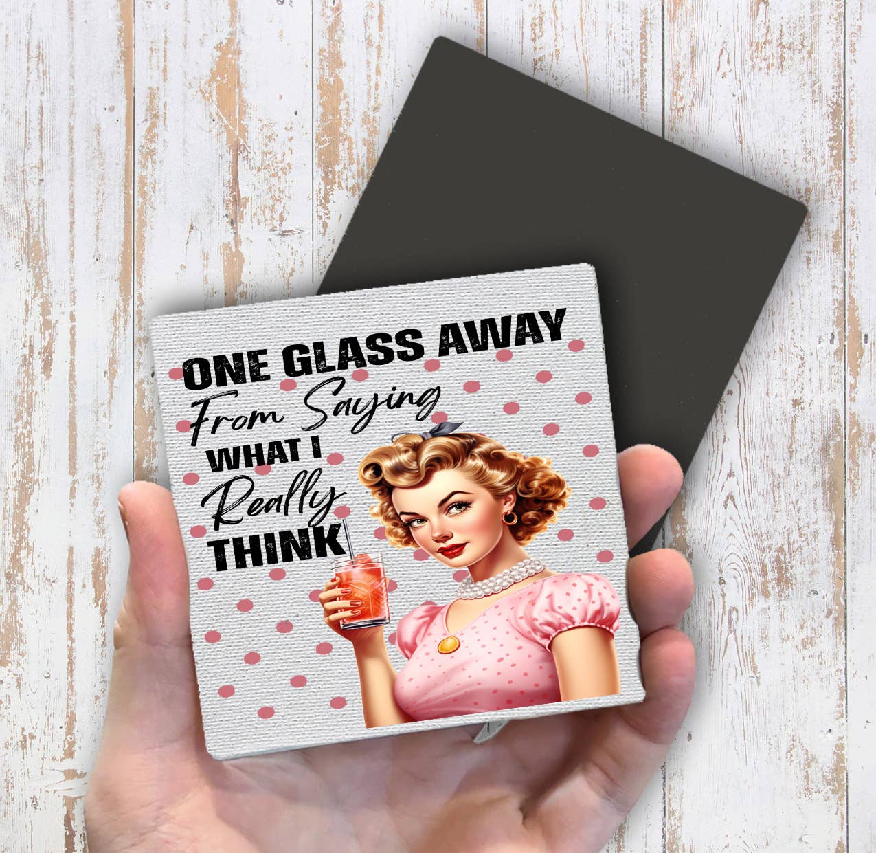 One Glass Away Saying What I Think Magnet Fridge - Sets of 2