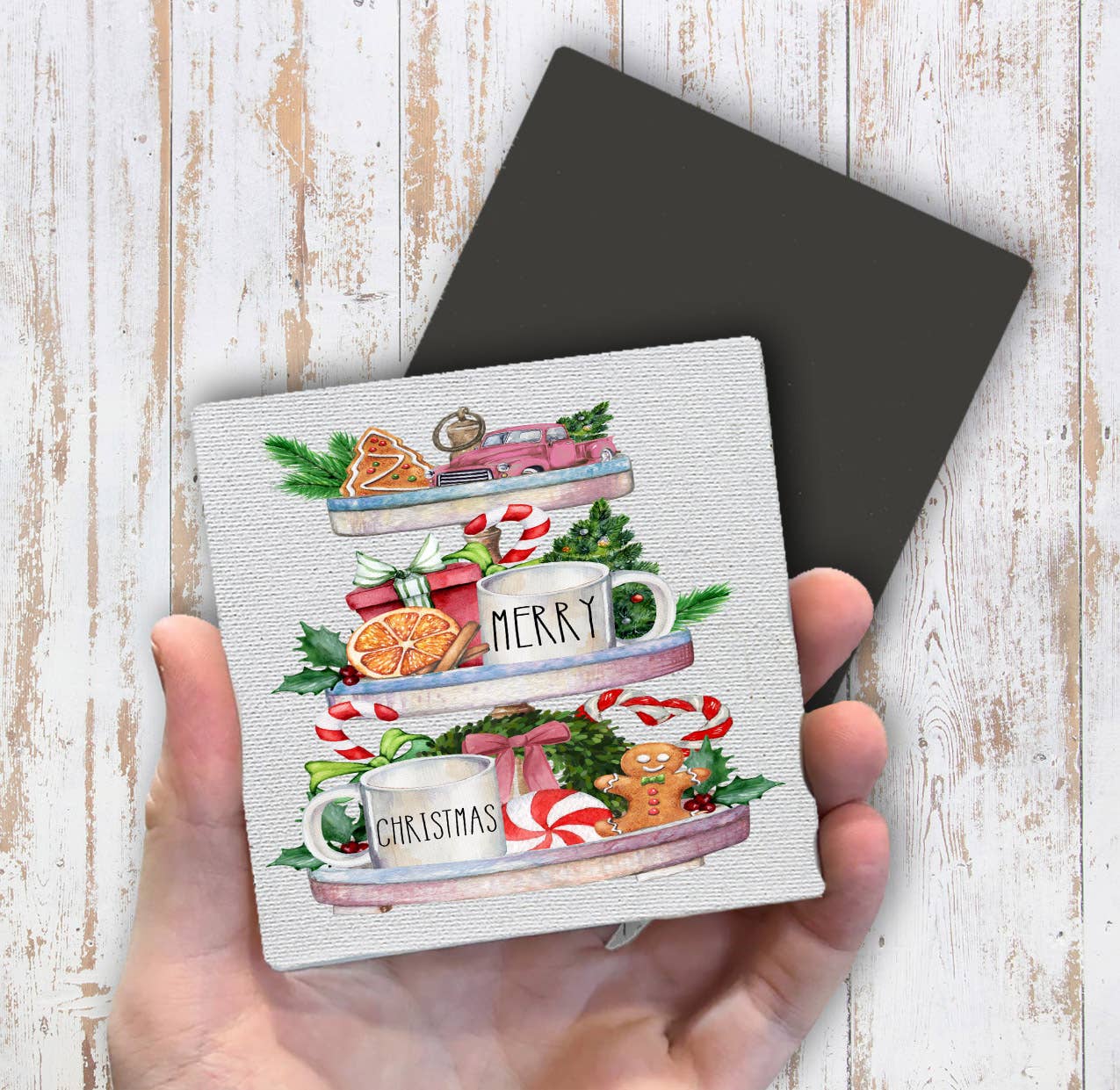 Merry Christmas Festive Tray Gingerbread, Magnet Fridge - Sets of 2