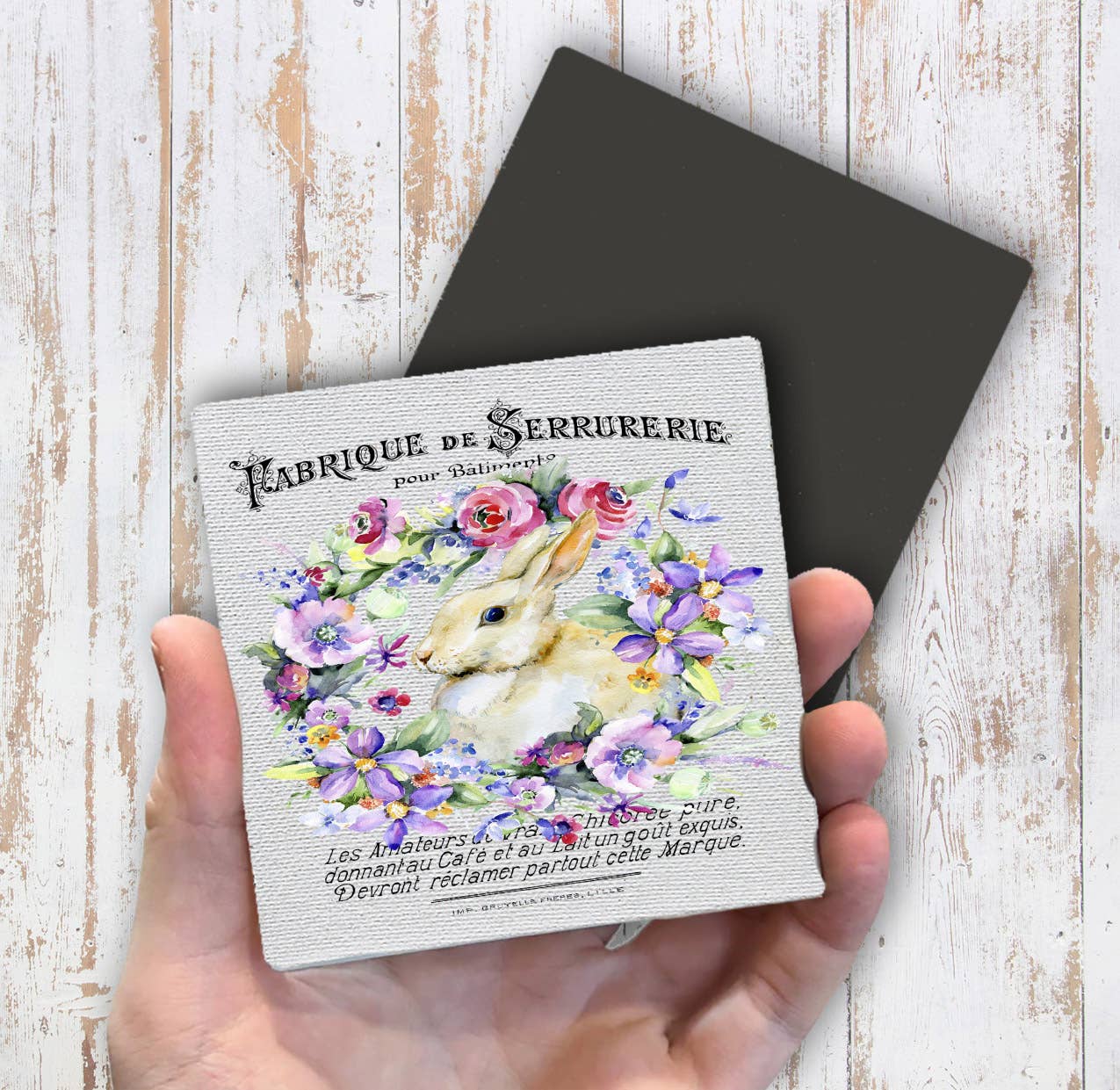Easter French Bunny Flowers Magnet Fridge - Sets of 2