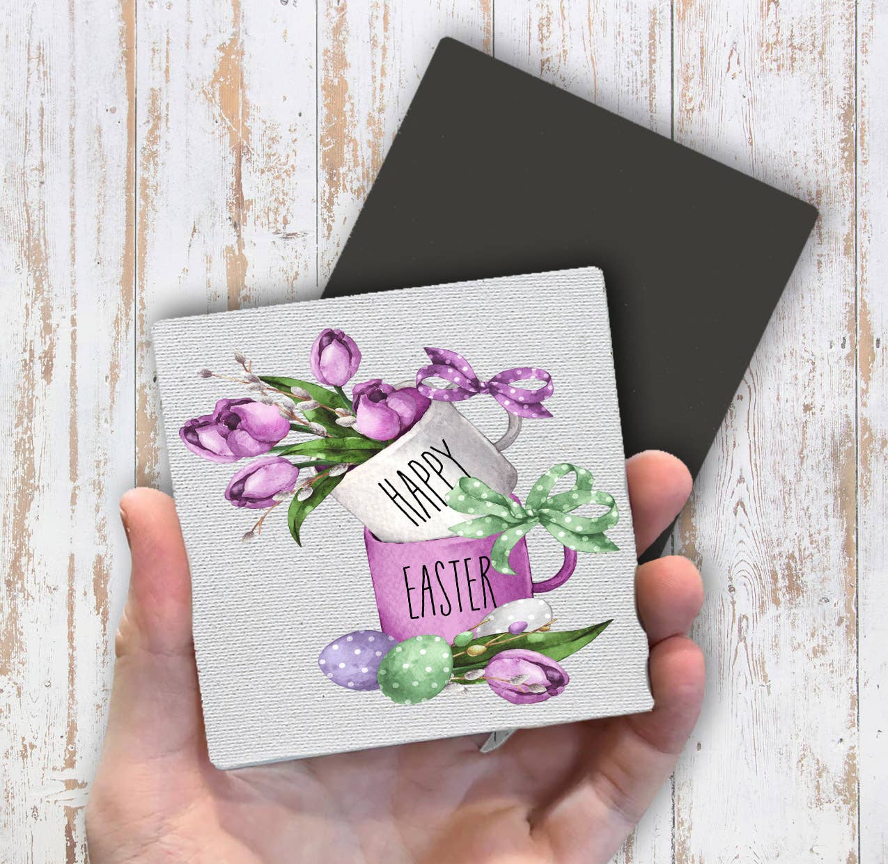 Happy Easter Tulips Coffee Mugs Magnet Fridge - Sets of 2