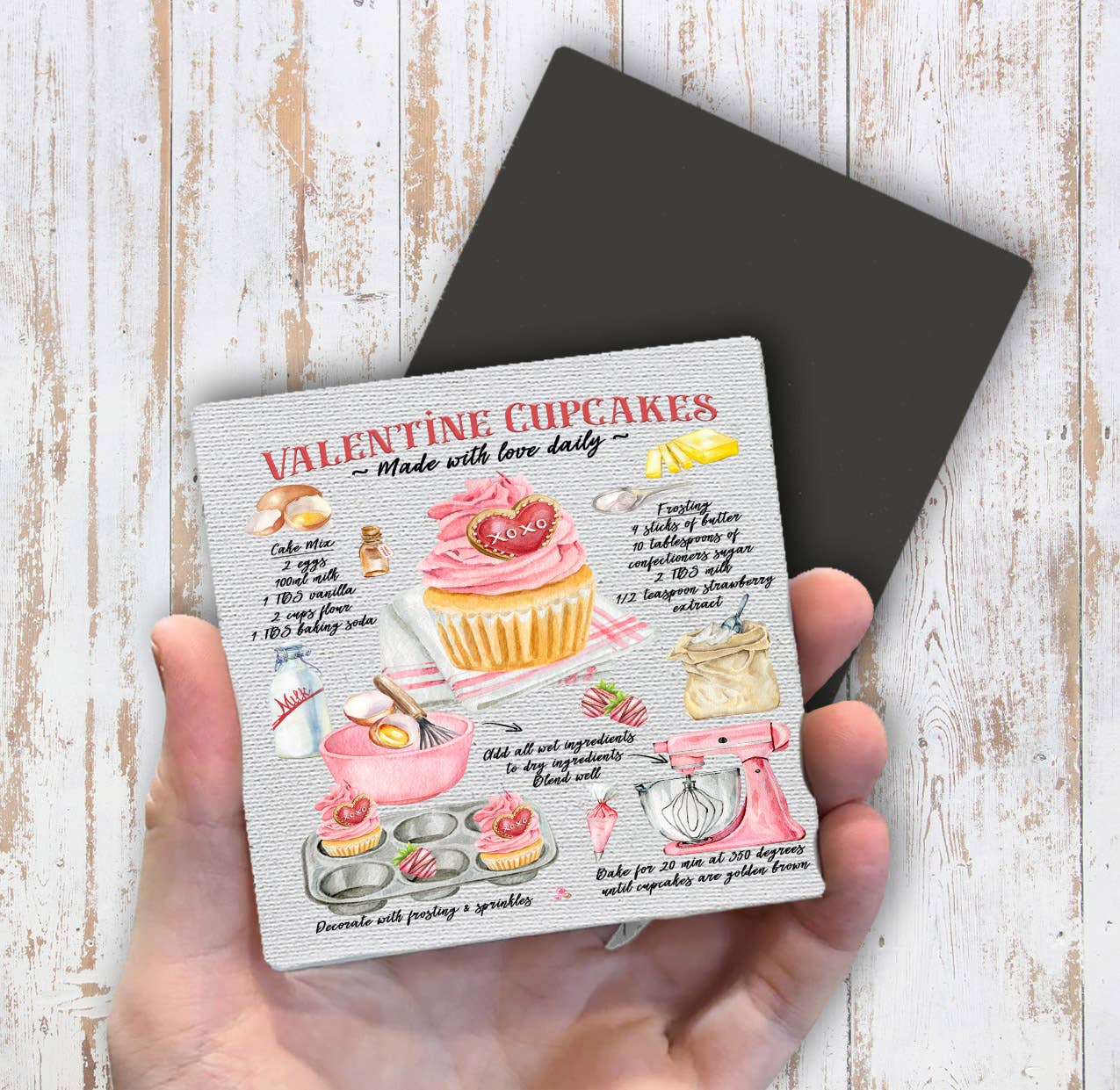 Valentine Cupcake Recipe Magnet Fridge - Sets of 2