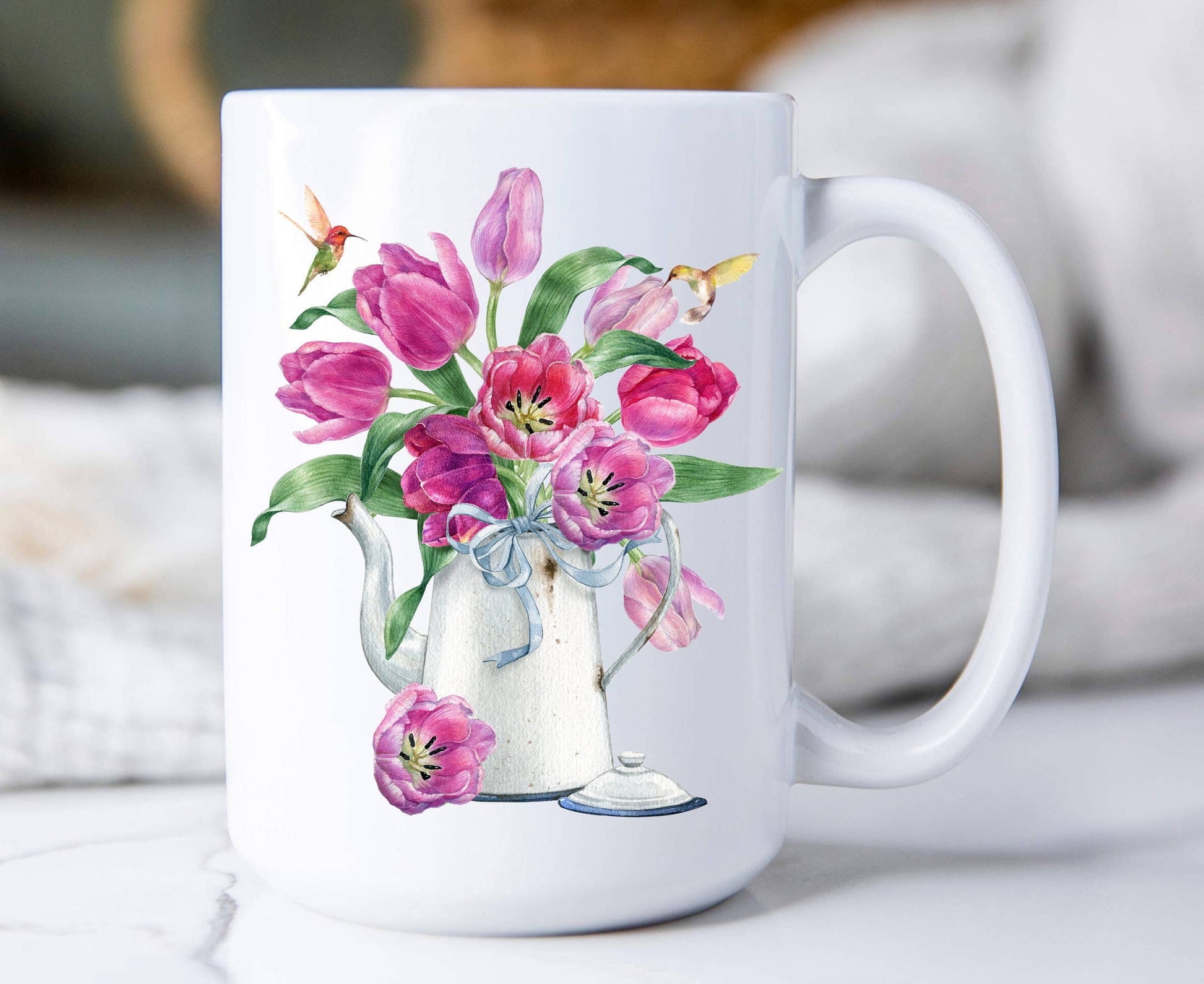 Spring Garden Tulips Humingbirds 15 oz Coffee Mug