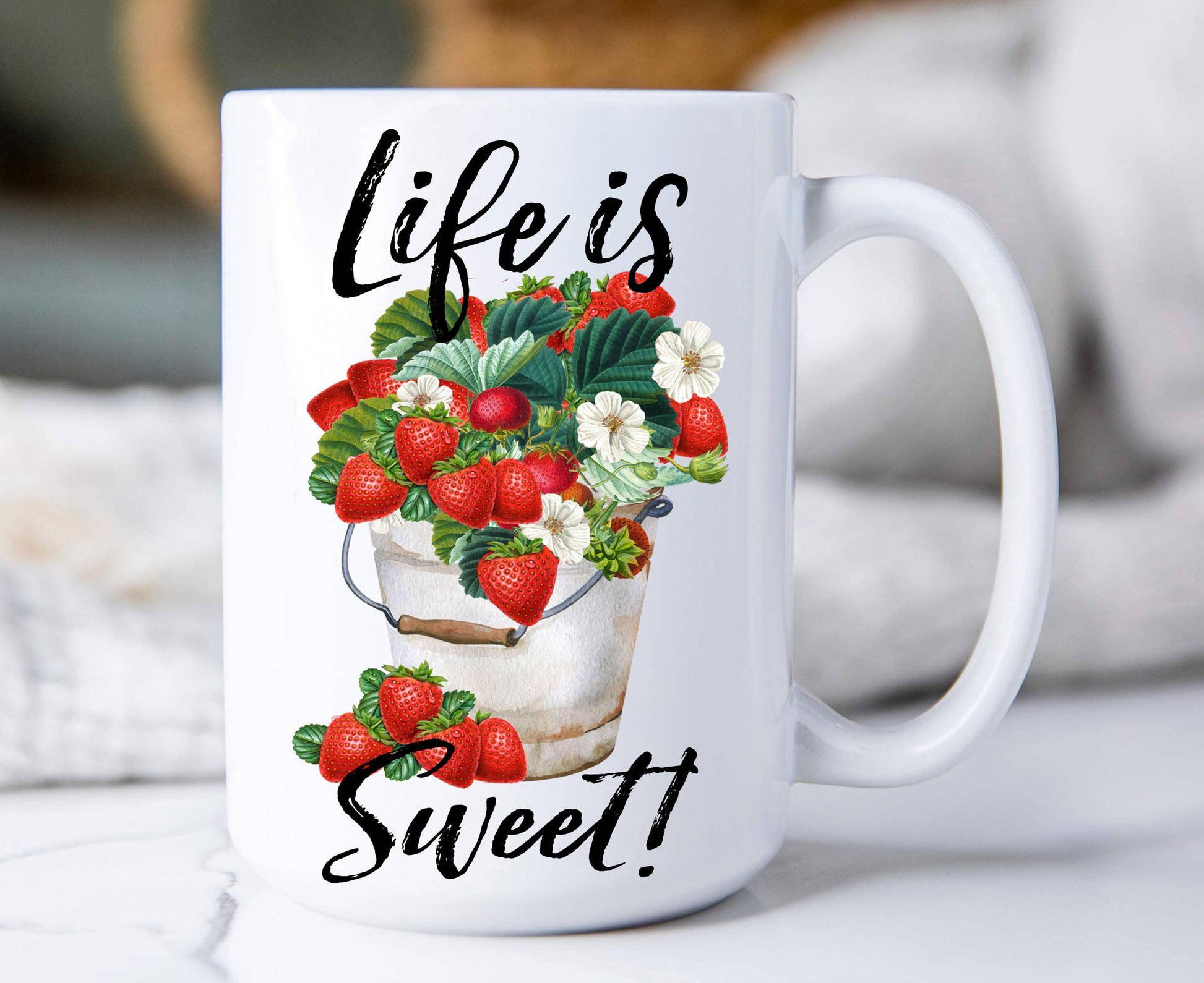 Life is Sweet Bucket of Strawberries 15 oz Coffee Mug