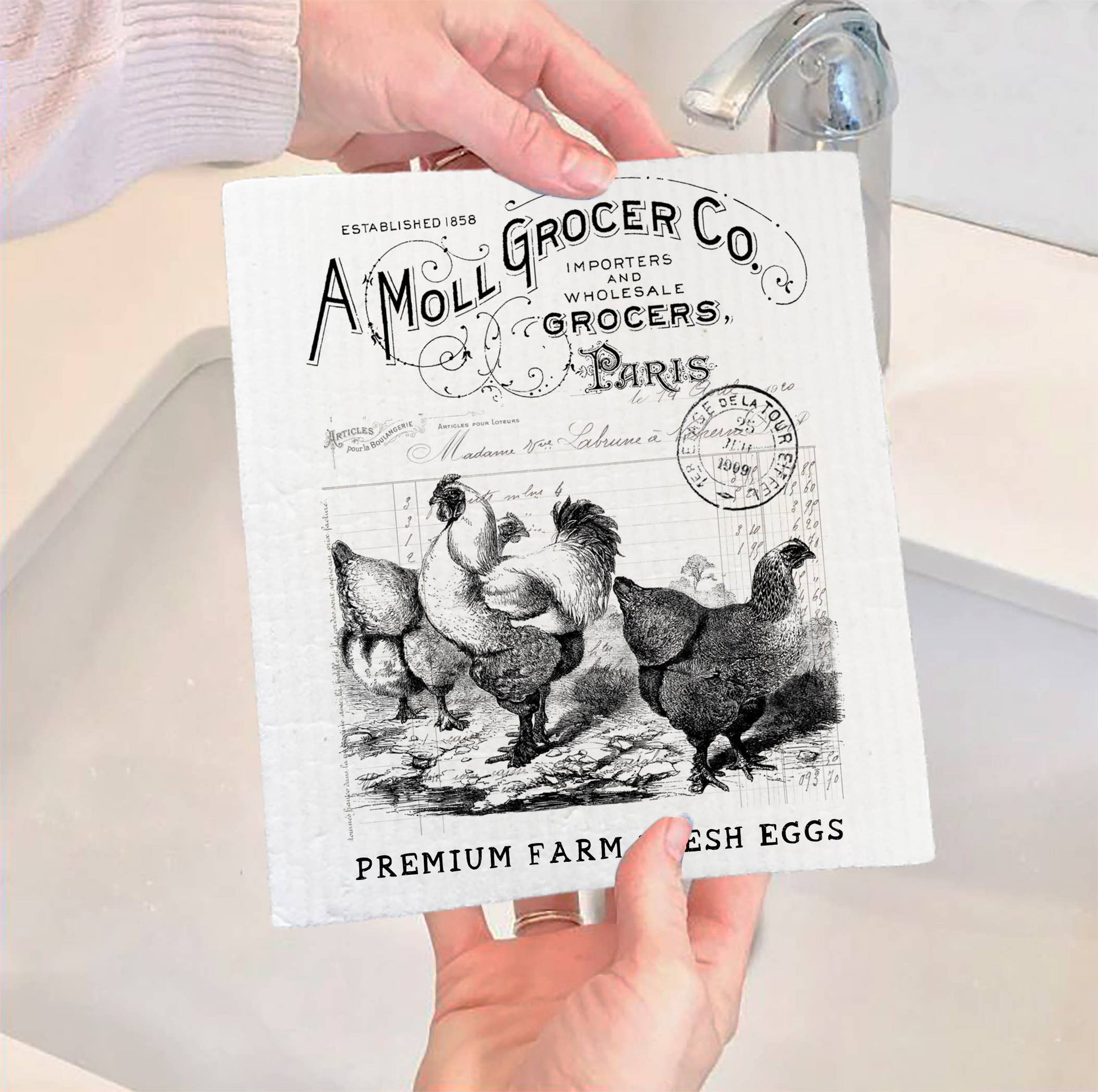 Set of 2 - Vintage French Chickens Cottage Swedish Dish Cloth