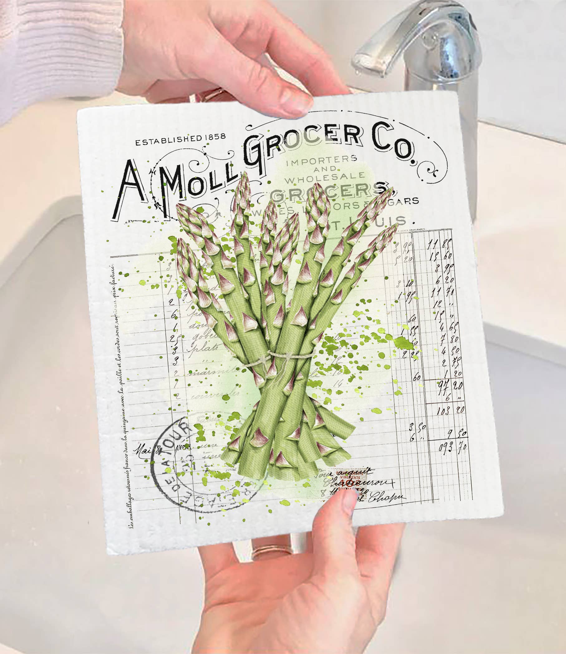 Set of 2 - Vintage Farmhouse Aspargas Vegetables SWEDISH DISH CLOTH