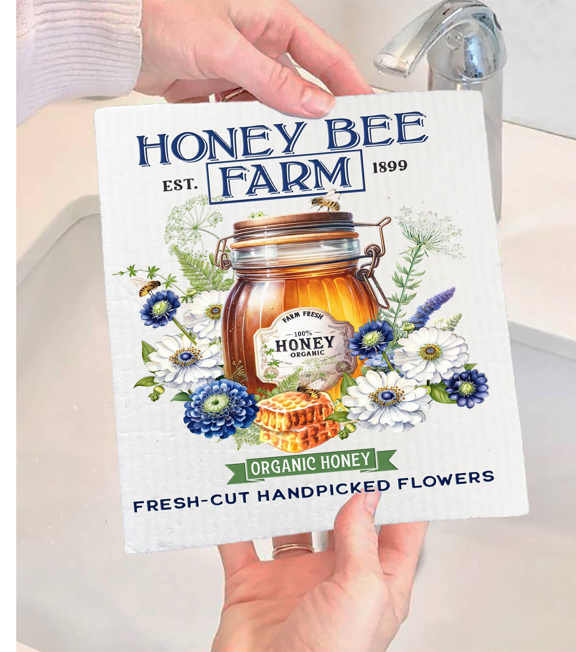 Modern Farmhouse Honey Bee Farm Swedish Dishcloth-Set of 2