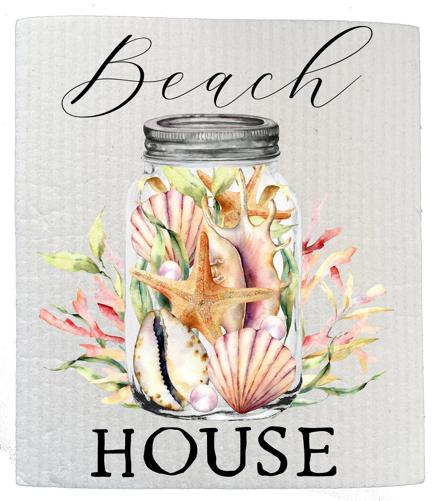 Set of 2 - Beach House Mason Jar Sea Shells Ocean SWEDISH DISH CLOTH