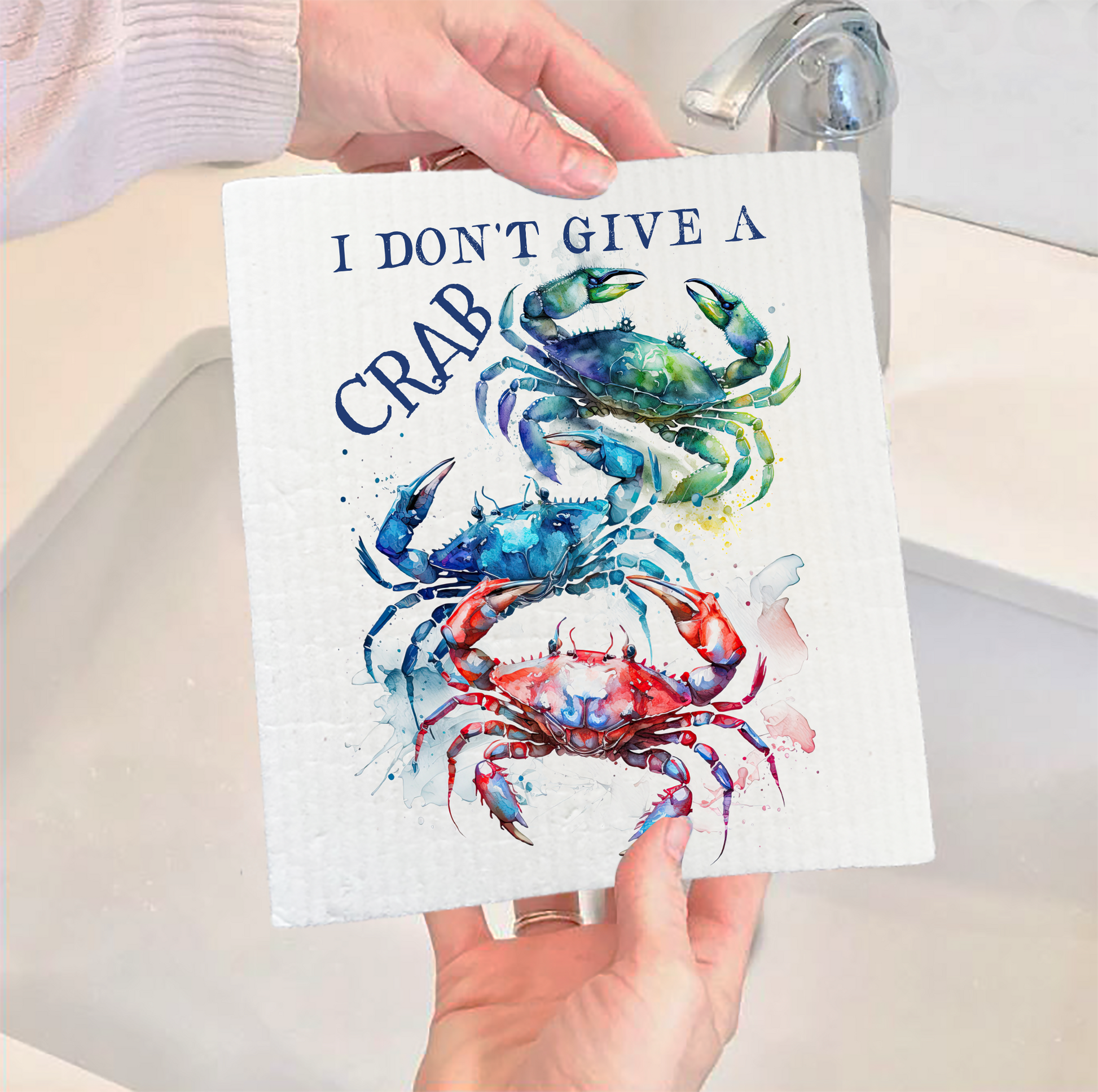 Set of 2 - Coastal Beach I Don't Give a Crab SWEDISH DISH CLOTH