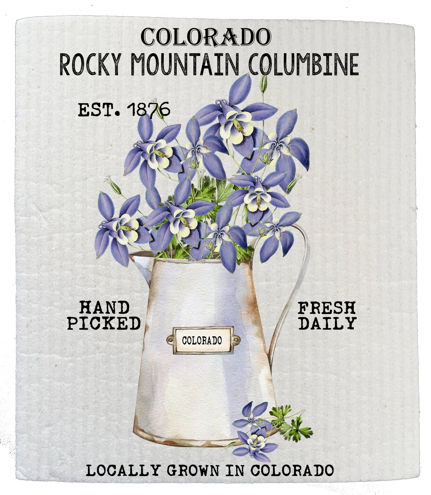 Set of 2 - Colorado State Flower Columbine Souvenir Kitchen SWEDISH DISH CLOTH