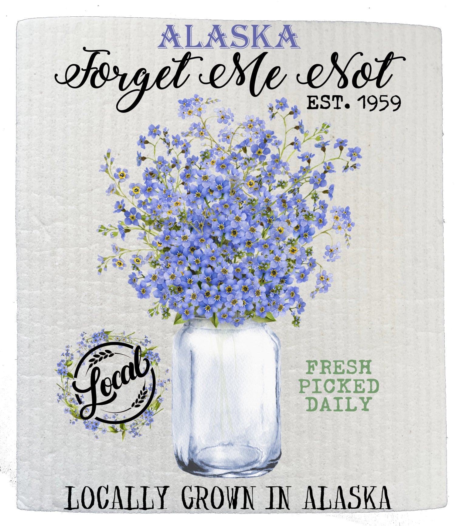 Set of 2 - Alaska State Flower Forget Me Not Souvenir Kitchen SWEDISH DISH CLOTH