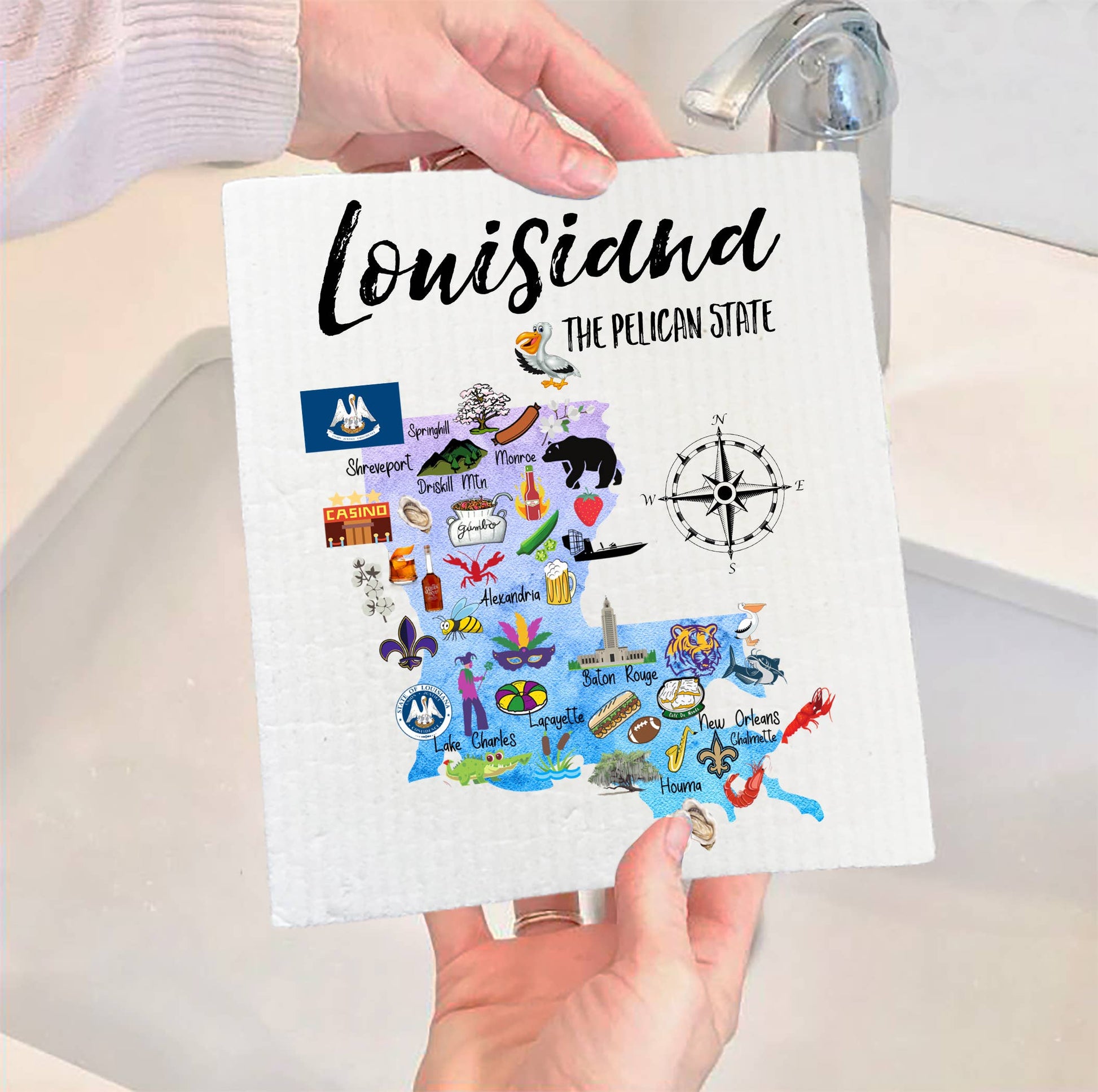 Set of 2 - Louisiana State Map Souvenir SWEDISH DISH CLOTH
