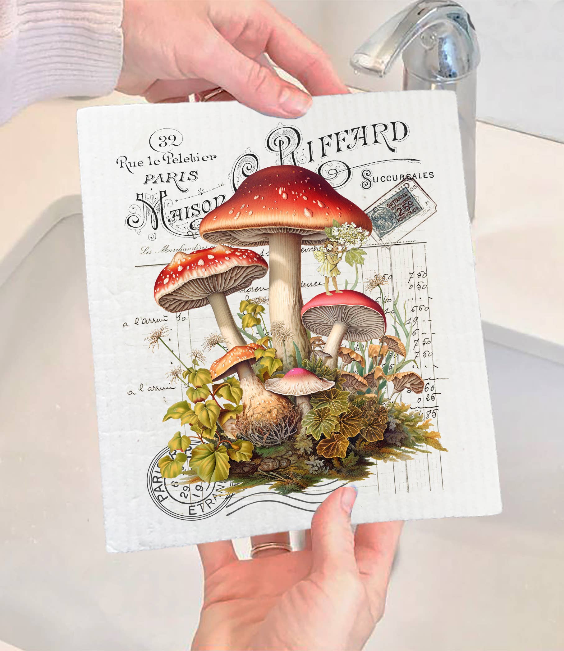 Set of 2 - Vintage French Red & White Mushrooms SWEDISH DISH CLOTH