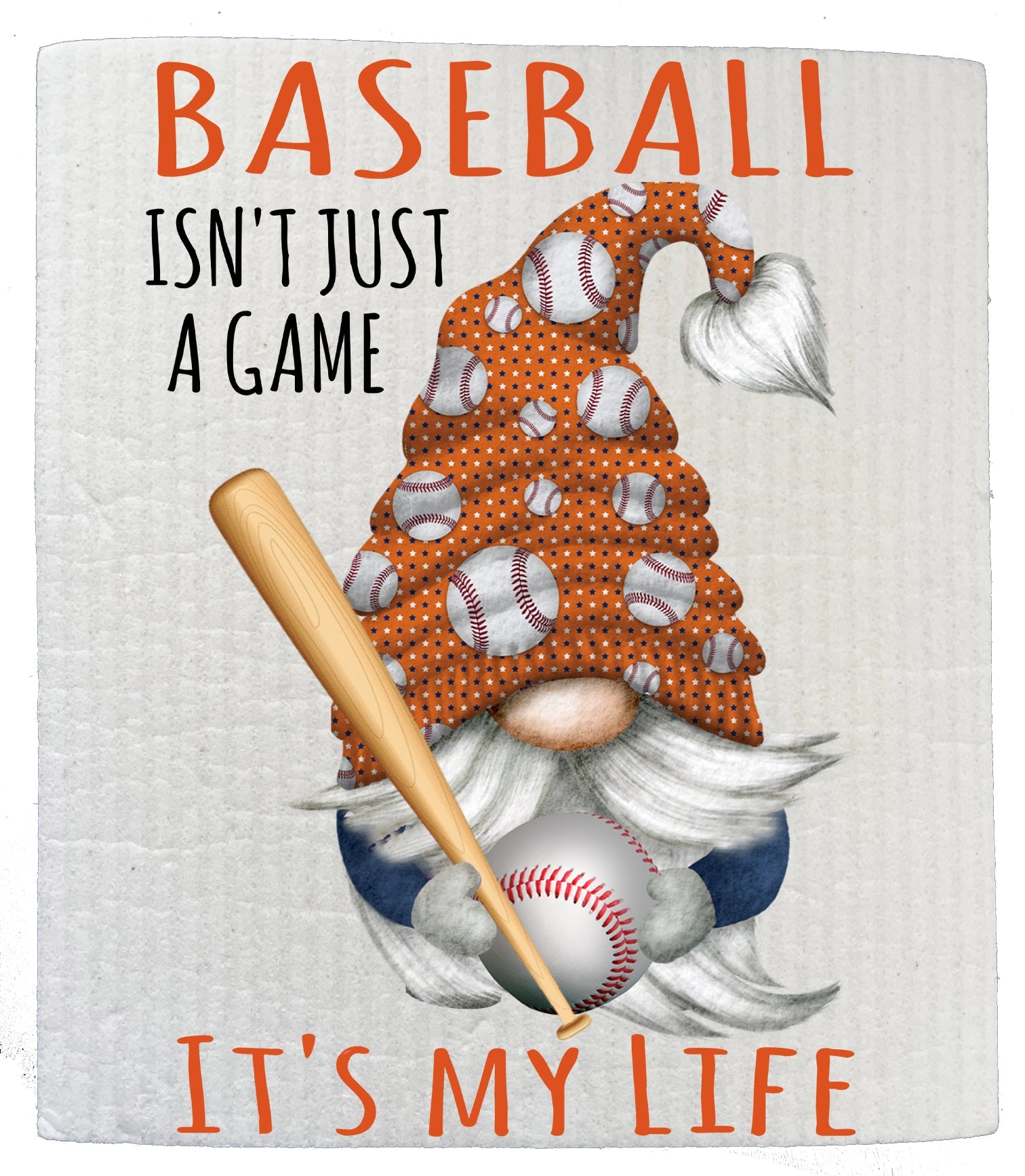Set of 2 - Gnome Baseball Orange & Blue Team Colors Kitchen SWEDISH DISH CLOTH