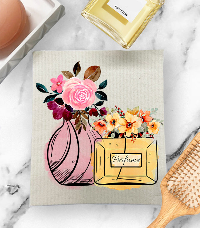 Set of 2 - Bath & Body Perfume Bottles Floral SWEDISH BODY CLOTH