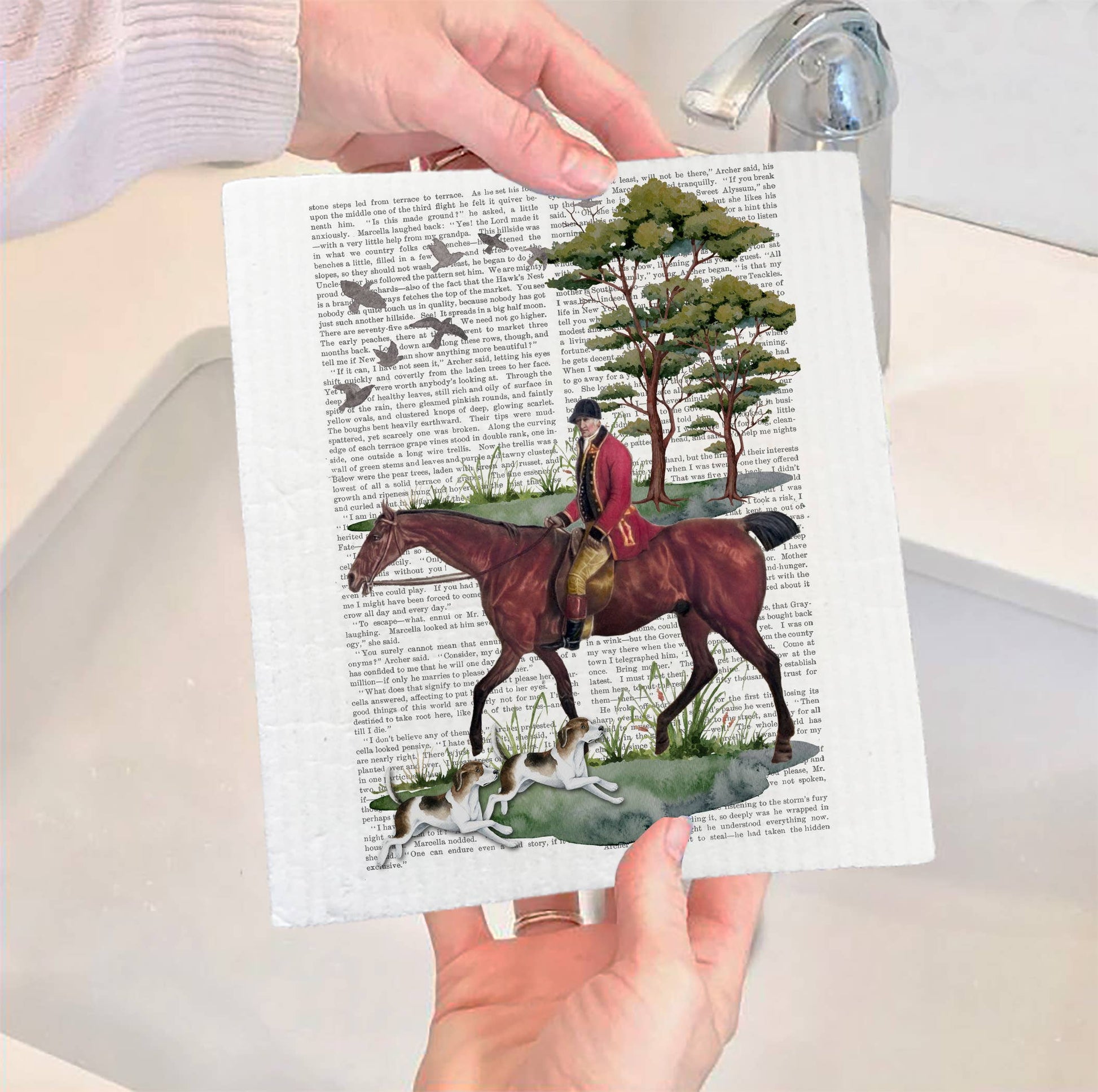 Set of 2 - Vintage Fox Hunting Horses SWEDISH DISH CLOTH