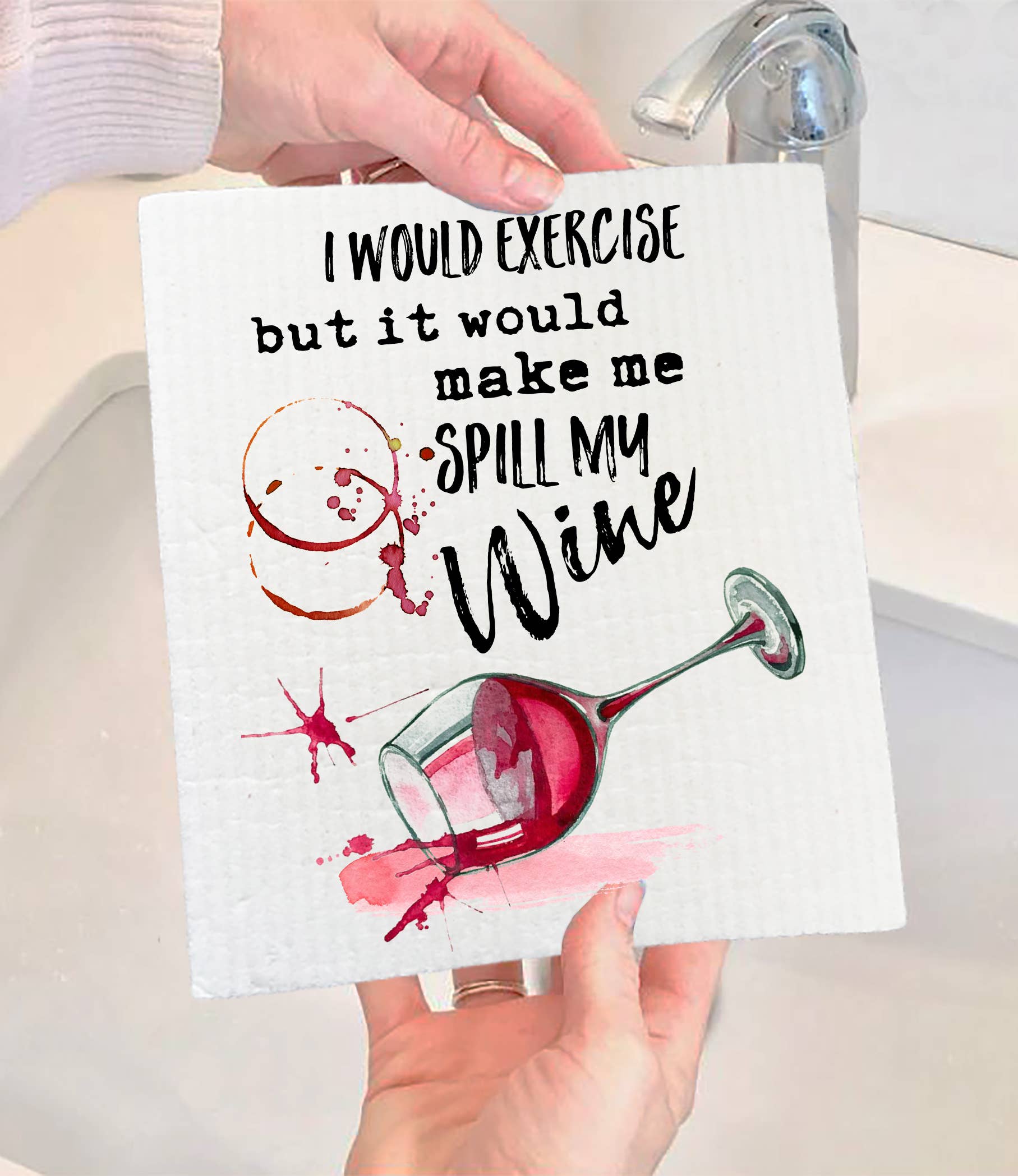 Set of 2 - Would Excerise Spill My Wine SWEDISH DISH CLOTH