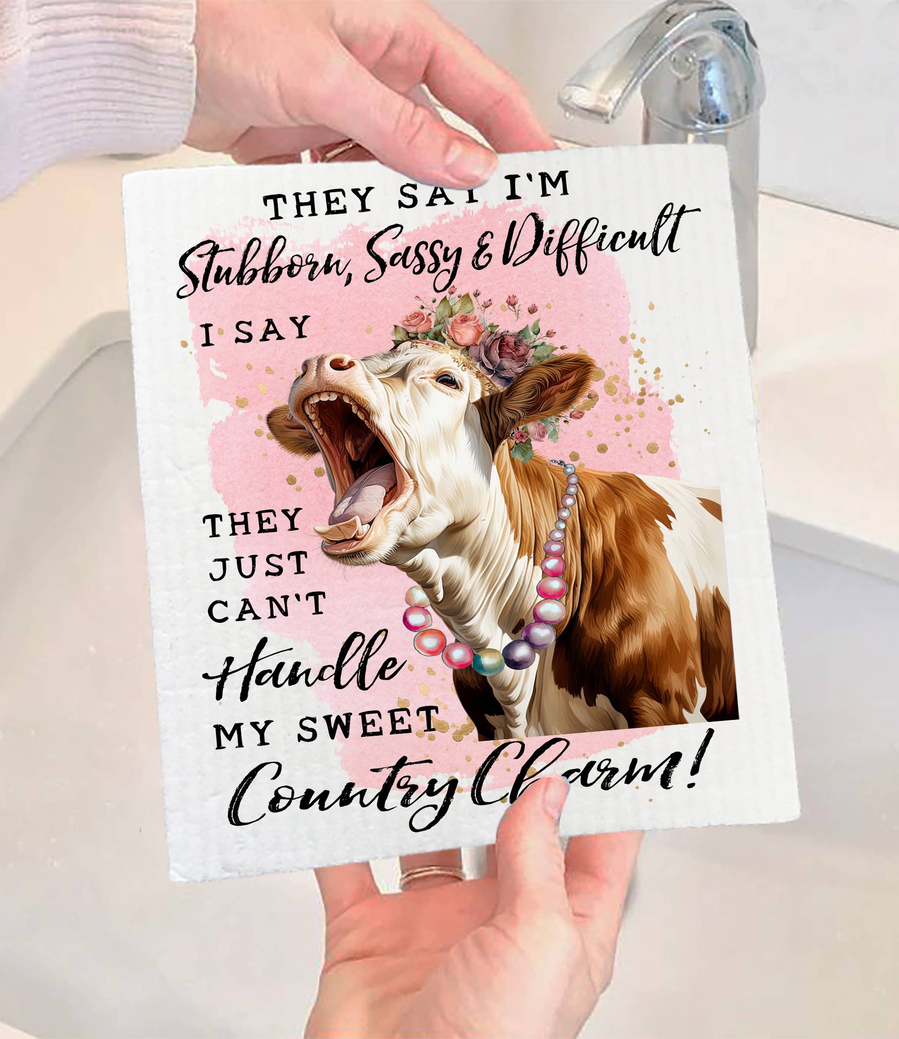 Set of 2 - Stubborn Sassy Country Charm Cow SWEDISH DISH CLOTH