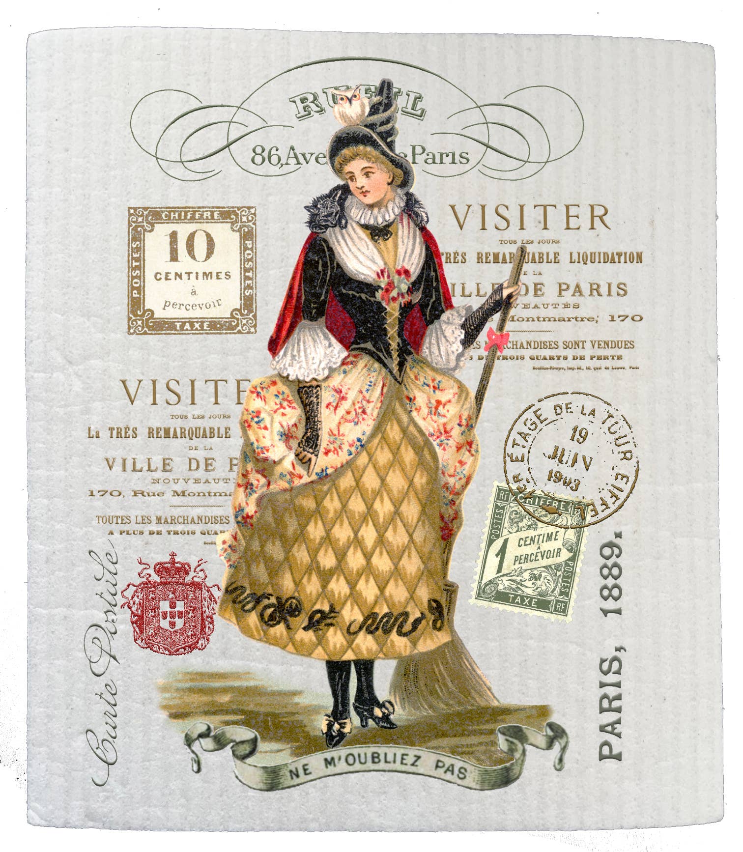 Set of 2 - Vintage Witch Paris Halloween SWEDISH DISH CLOTH