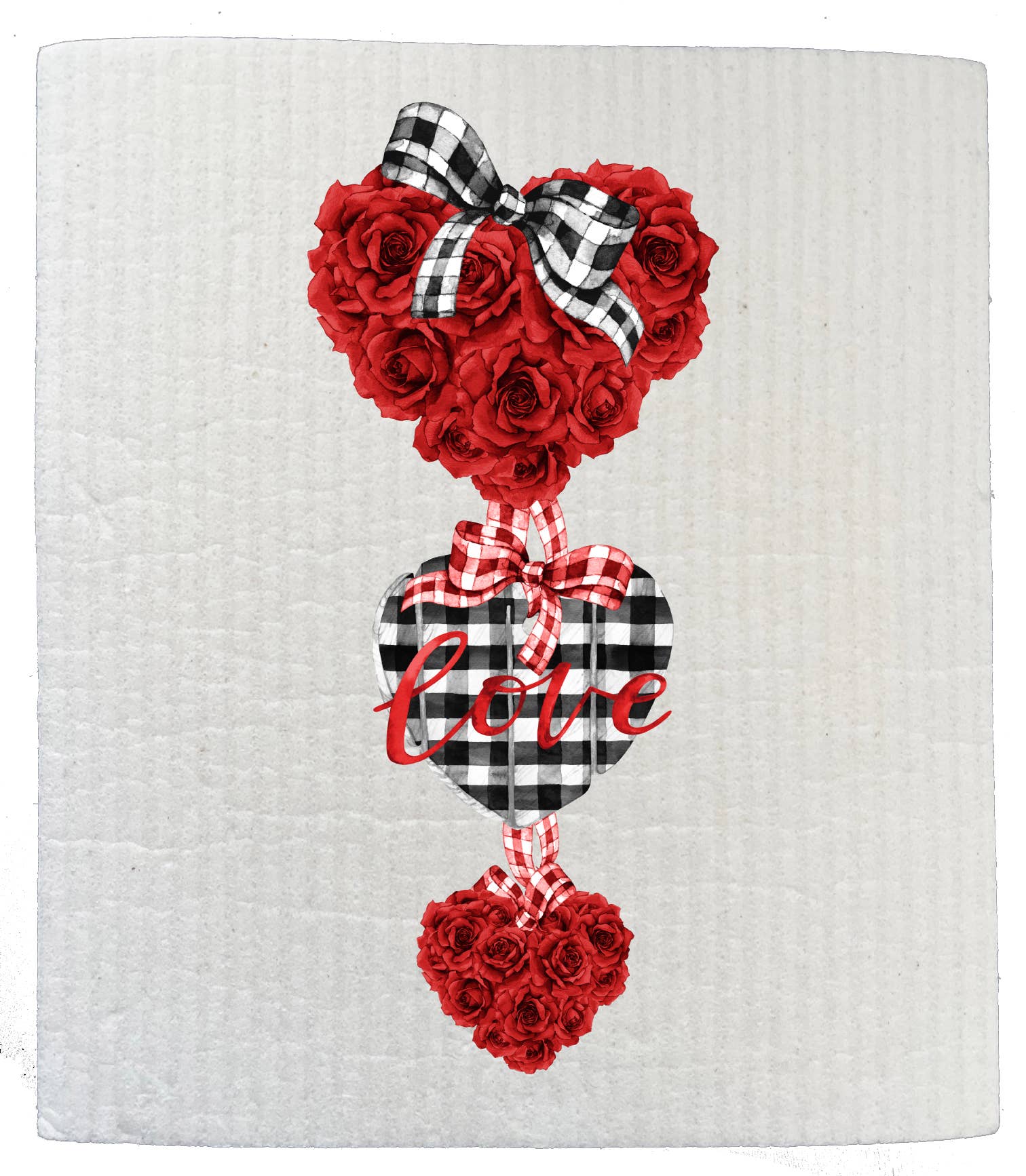 Set of 2 - Valentine Heart Red Roses SWEDISH DISH CLOTHS