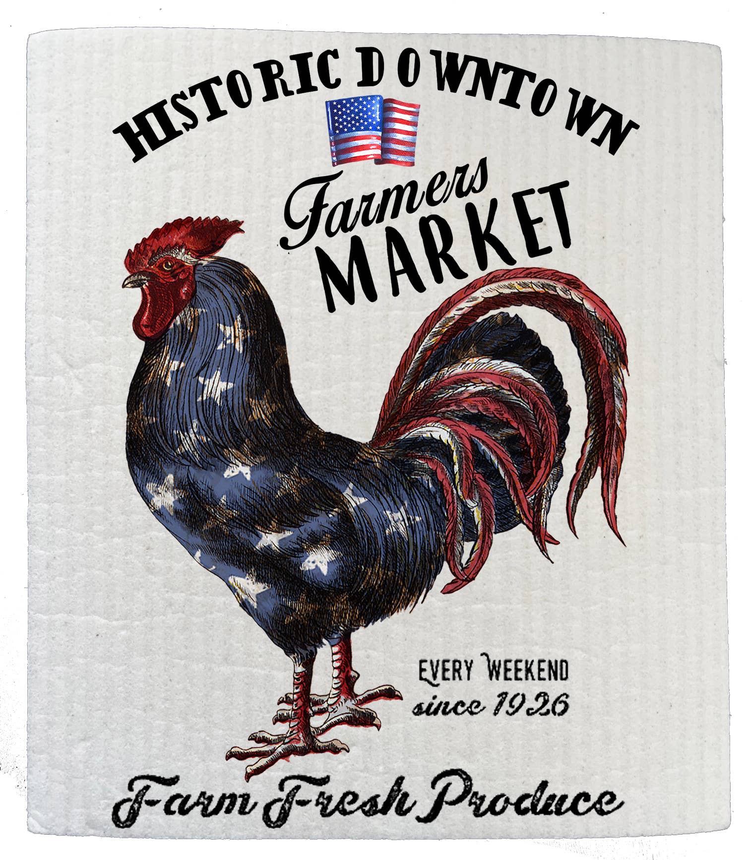 Set of 2 - Farmers Market Patriotic Rooster SWEDISH DISH CLOTH