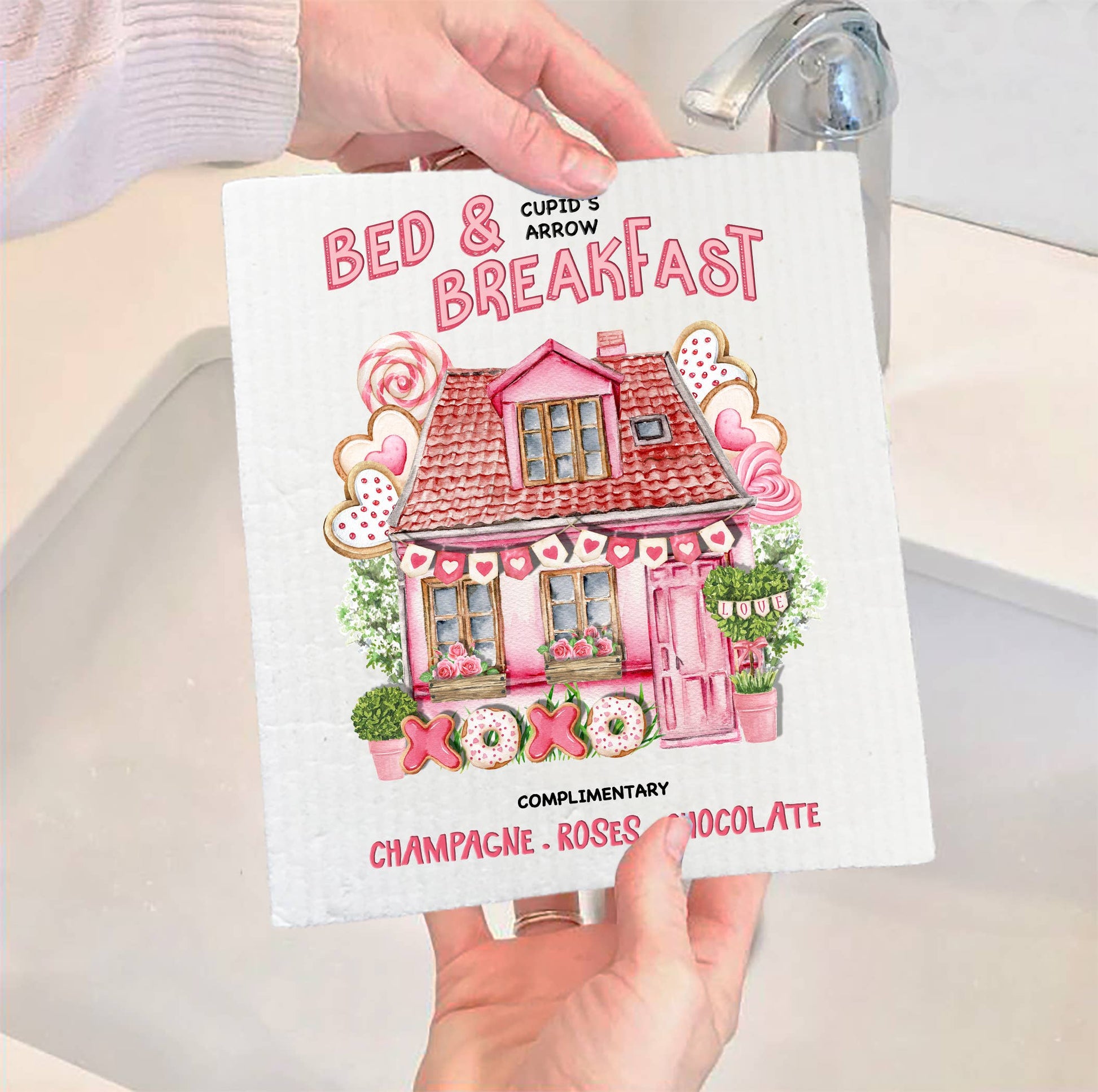 Set of 2 - Valentine Bed & Breakfast Cupid Swedish Dish Cloth