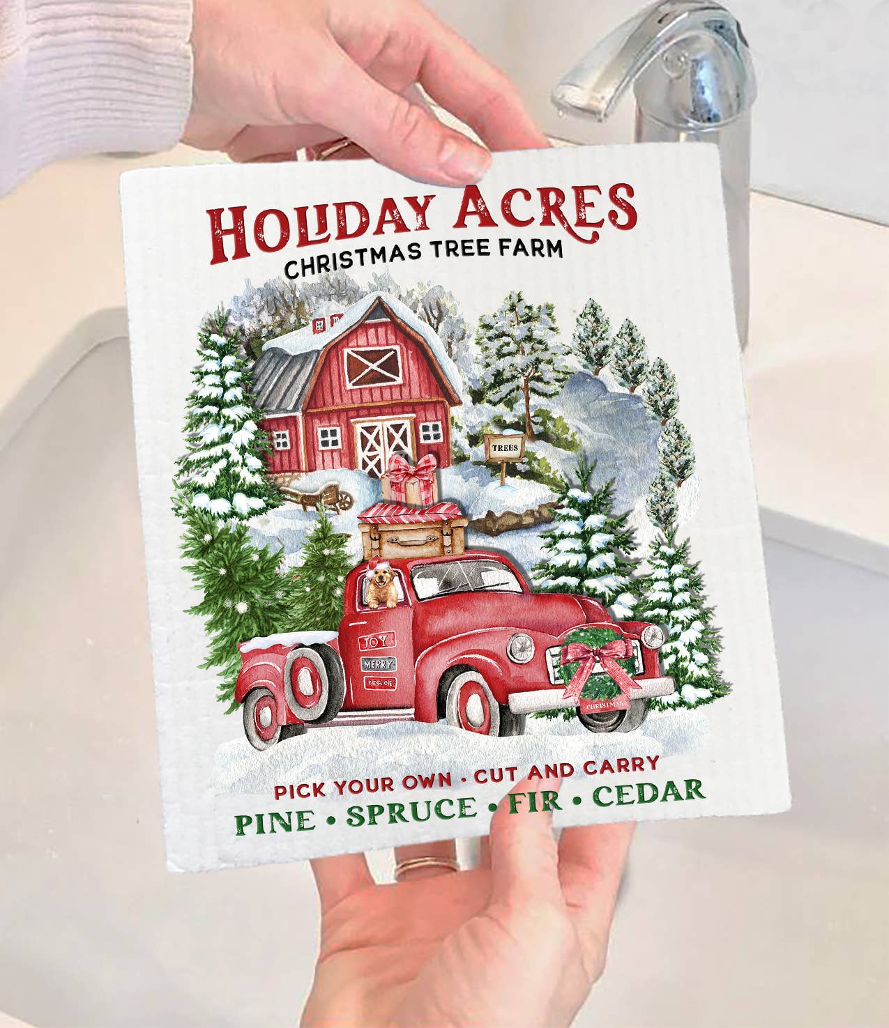Christmas Holiday Acres Tree Farm Swedish Dishcloth-Sets of 2