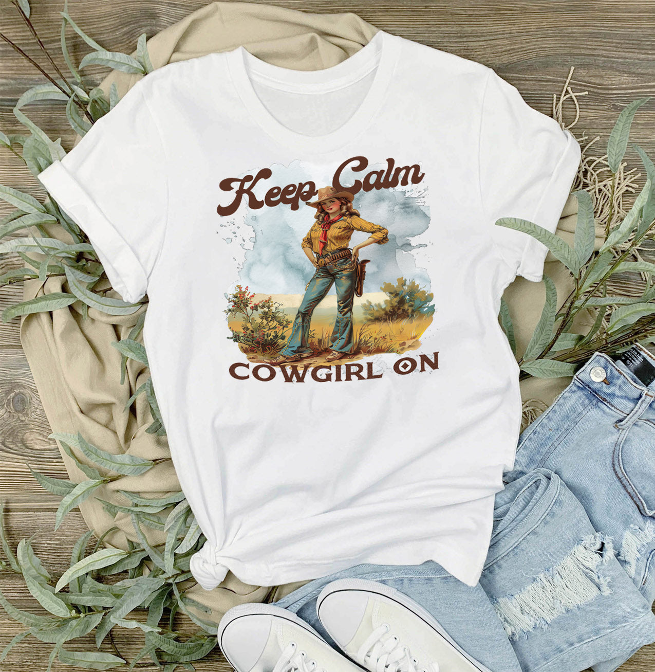 Vintage Cowgirls Keep Calm Cowgirl On T-Shirt