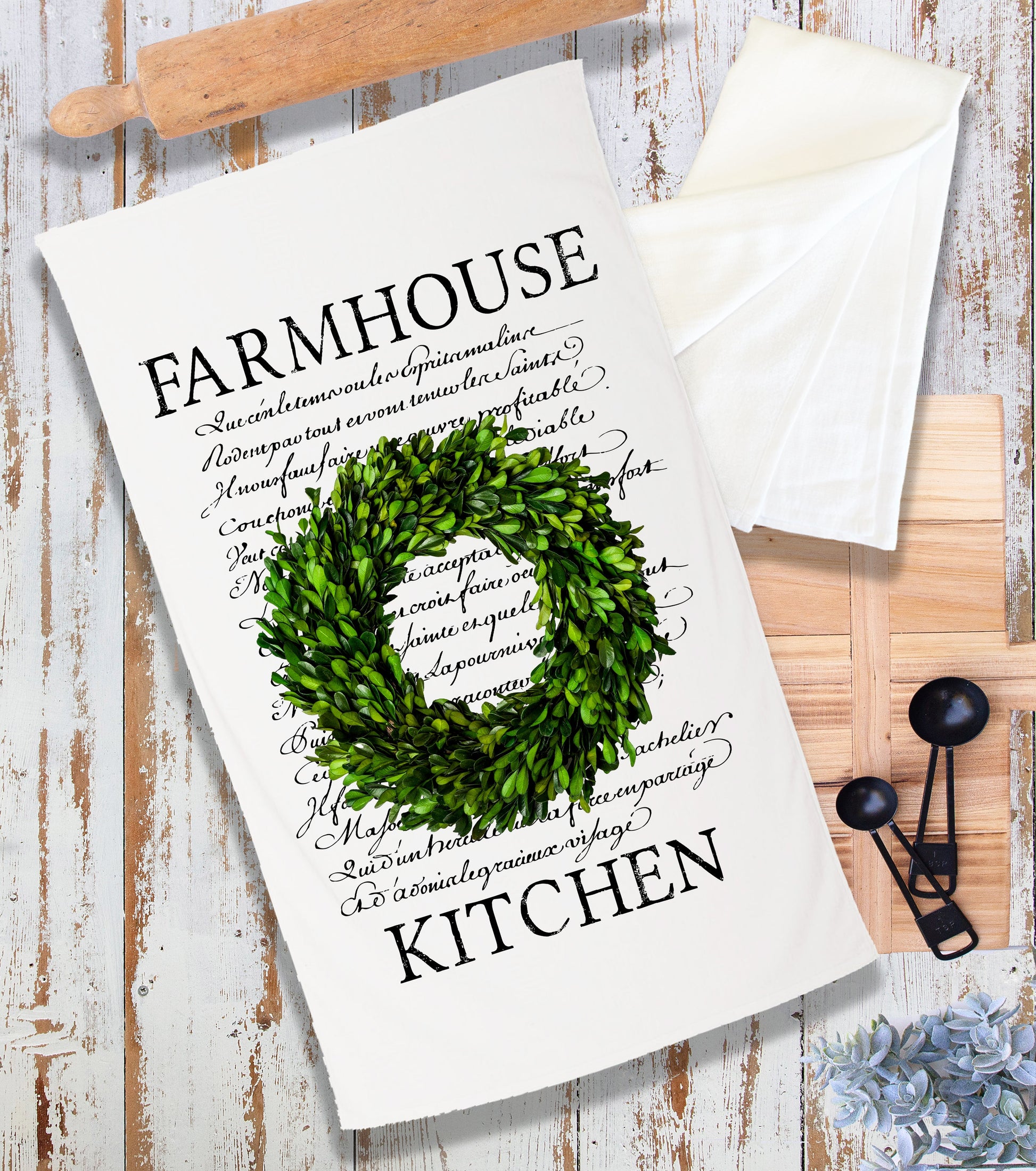 Farmhouse Kitchen Boxwood Wreath Terry Cloth Towel