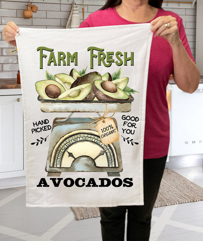 Farm Fresh Avocados Organic Kitchen Cotton Terry Towels