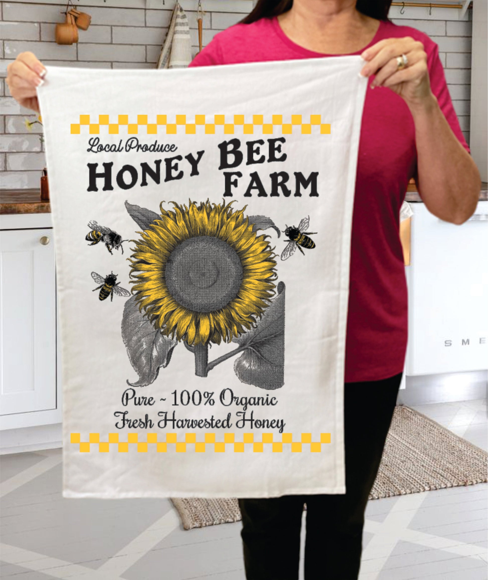 Vintage Honey Bee Farms Sunflower Kitchen Terry Towel