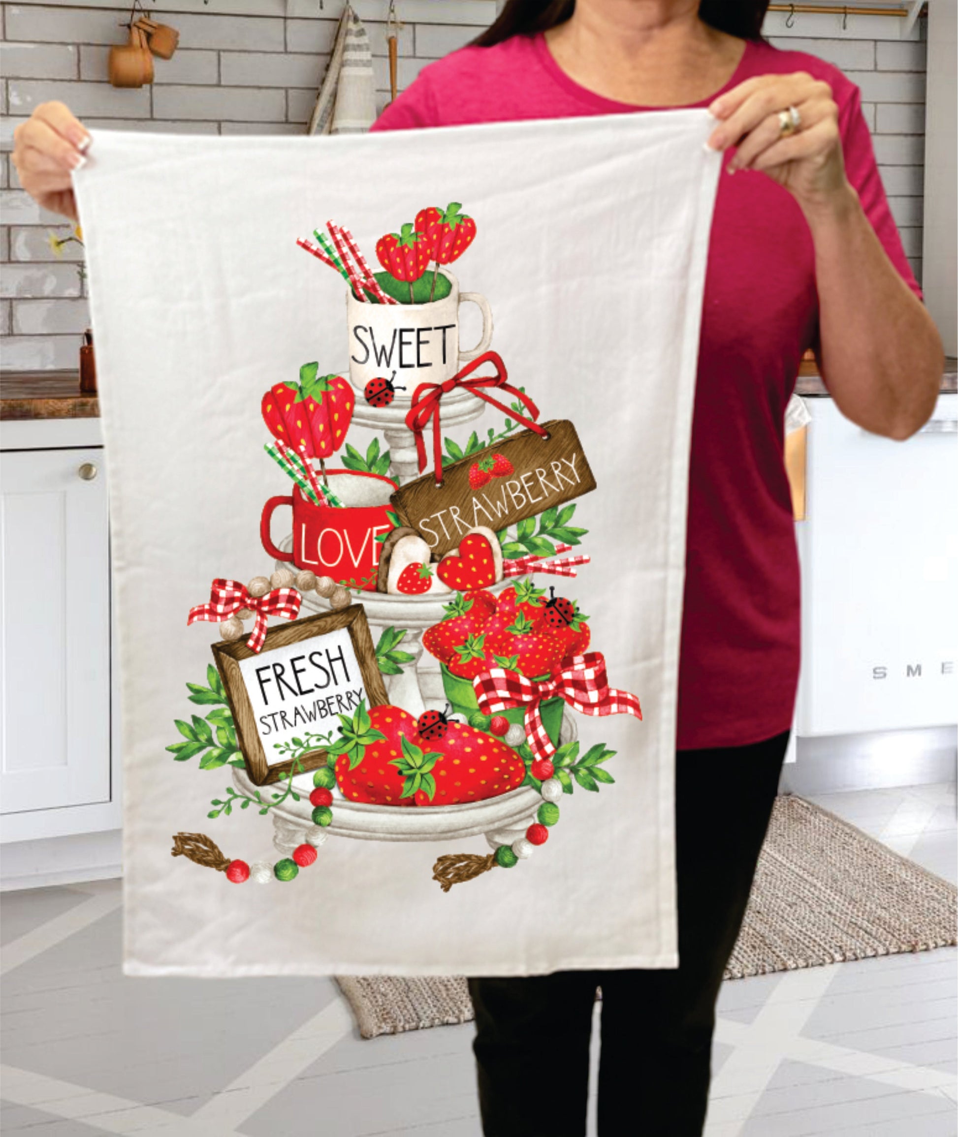 Sweet Fresh Strawberries Tiered Tray Terry Towel