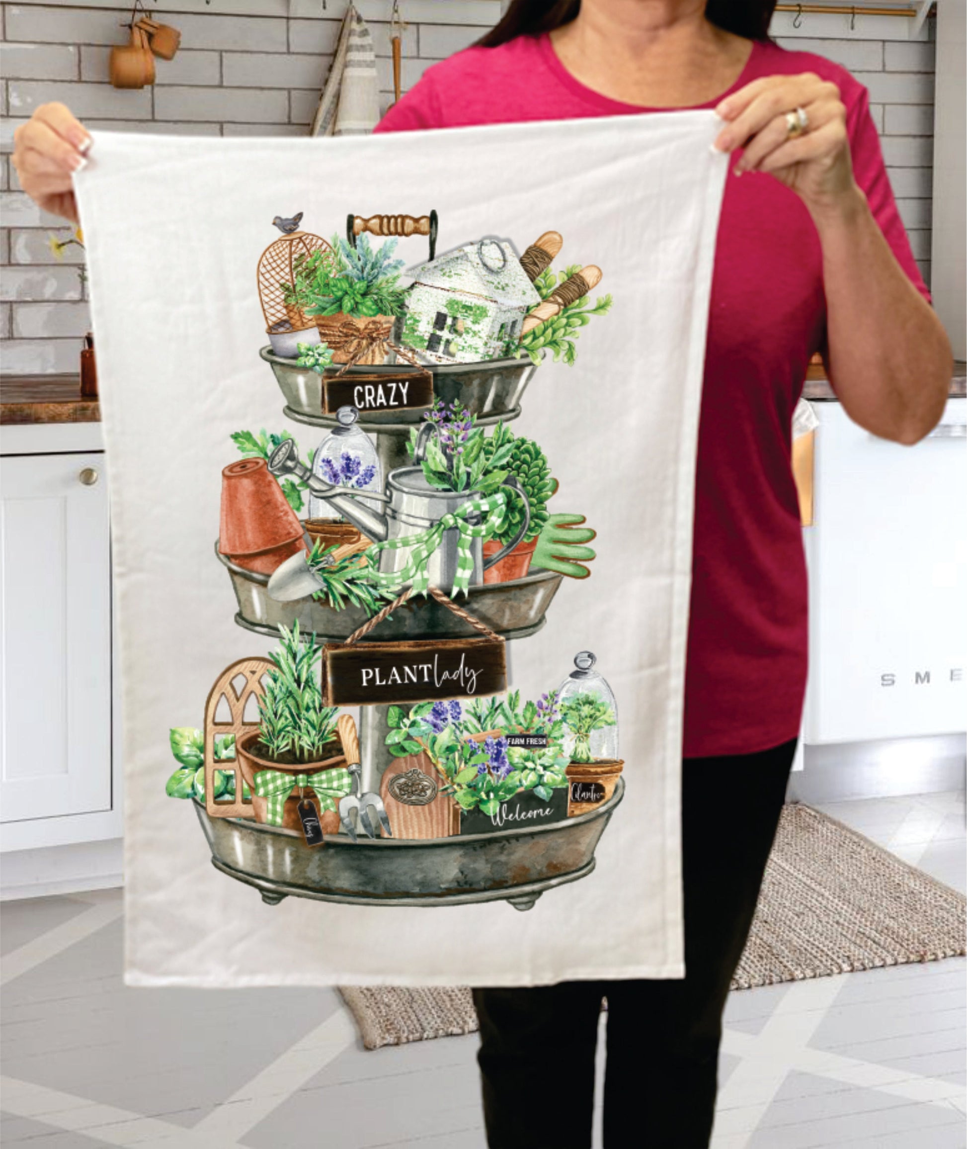 Crazy Plant Lady 3 Tier Tray Herbs Terry Towel