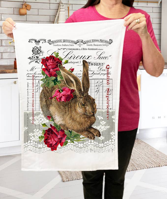 Vintage French Bunny Roses Spring Terry Cloth Towels