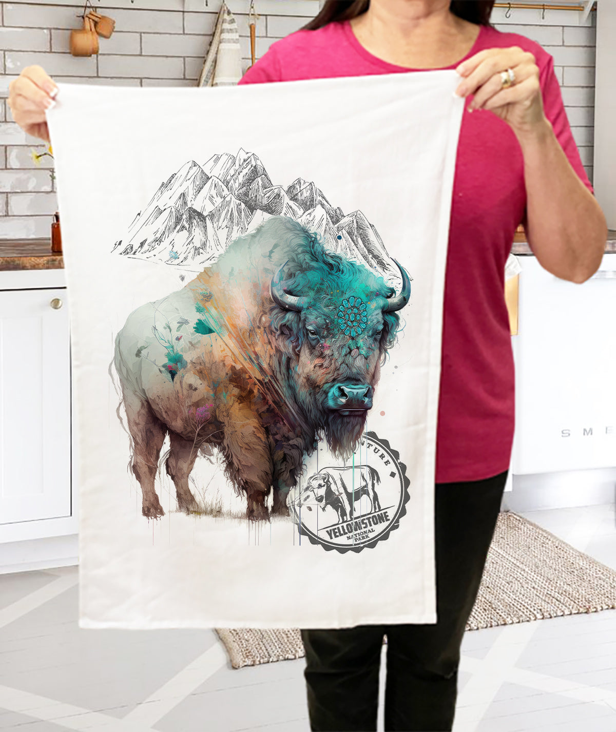 Western Buffalo Turquoise Yellowstone Kitchen Terry Cloth Towels