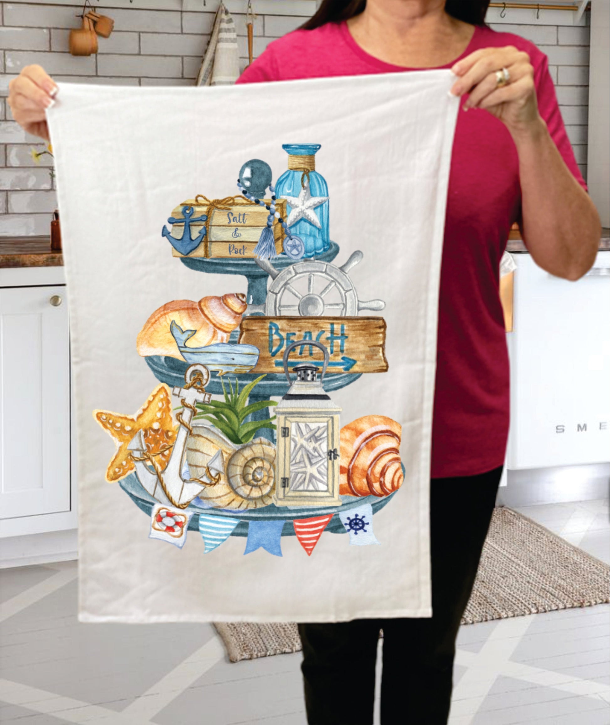 Beach Ocean Sea Shells 3 Tier Tray Terry Towel